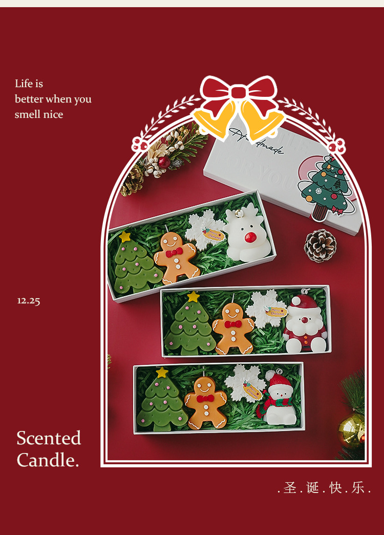 christmas aromatherapy candle gift box christmas elk (christmas tree + gingerbread man + snowflake + christmas elk)