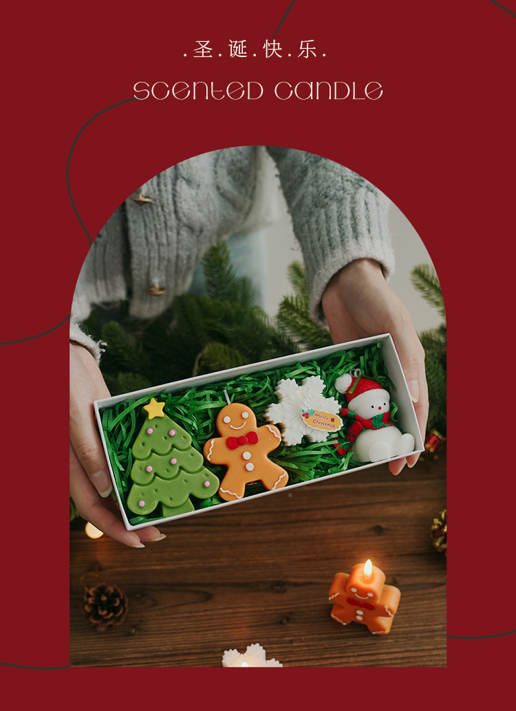 christmas aromatherapy candle gift box christmas elderly (christmas tree + gingerbread man + snowflake + santa claus)