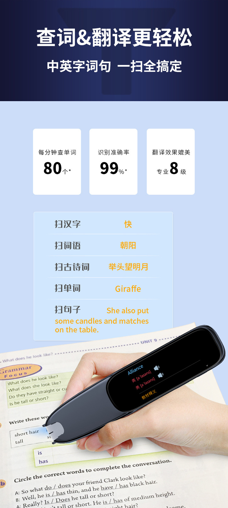 un-15 ultra-large screen offline scanning pen [blue] + silicone case