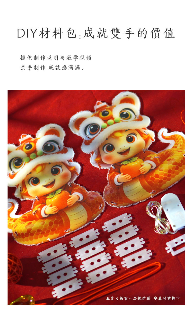 2025 snake year-red jinfu snake small size-imitation glass lantern (free tassel + led light)
