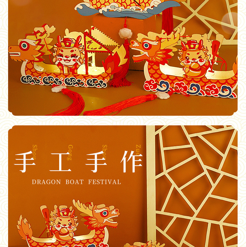 dragon boat festival-colorful wooden-dragon boat-work together + led lighting chain