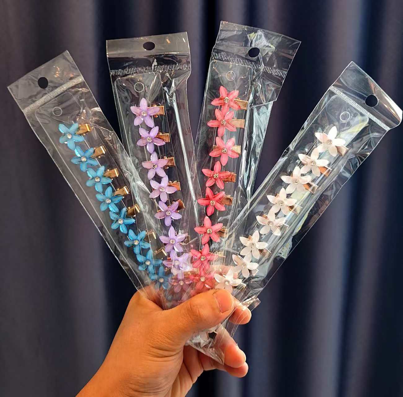 3# blue flowers barrettes [5 bags]]
