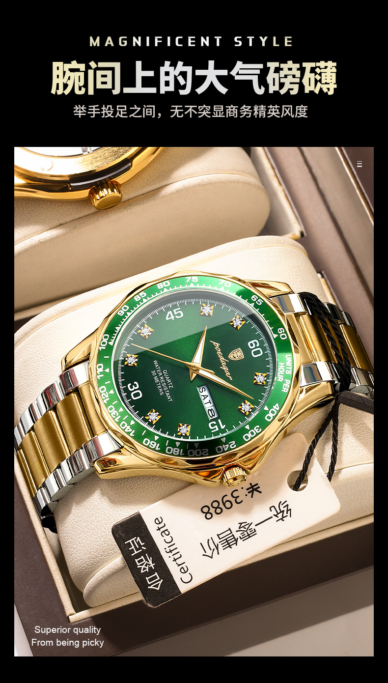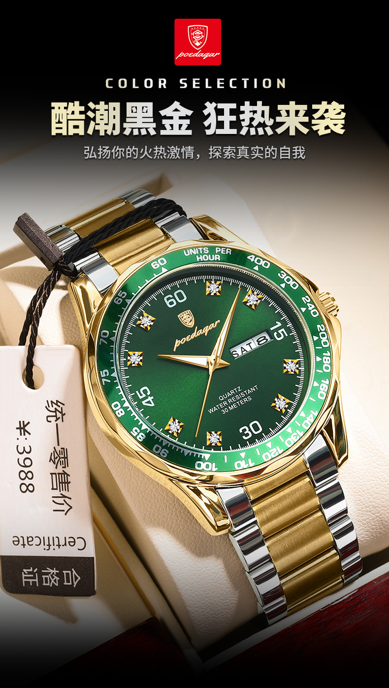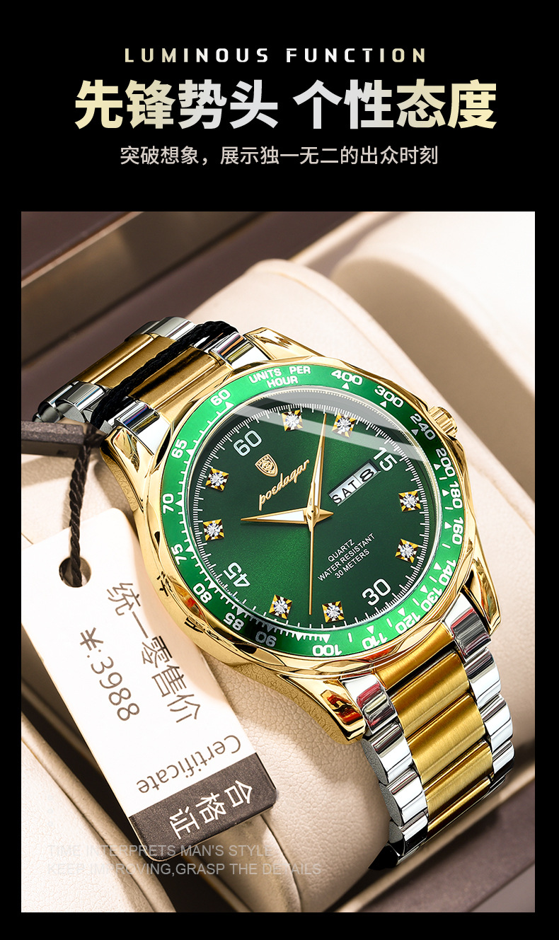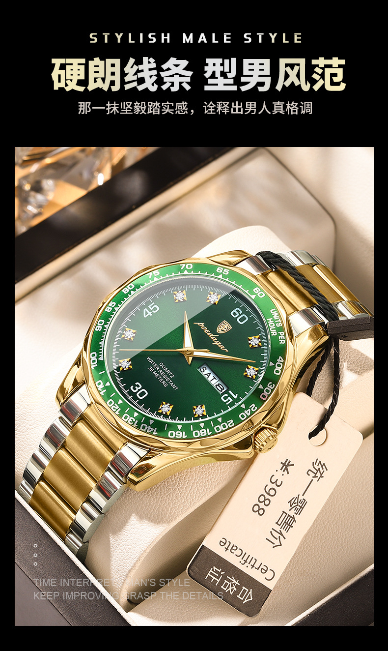 p963 silver case green surface steel belt
