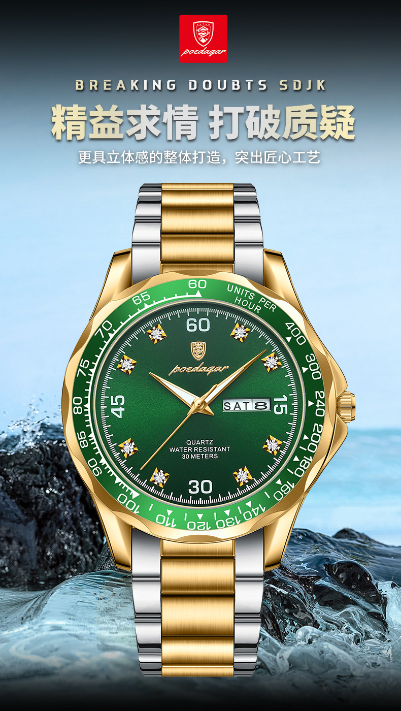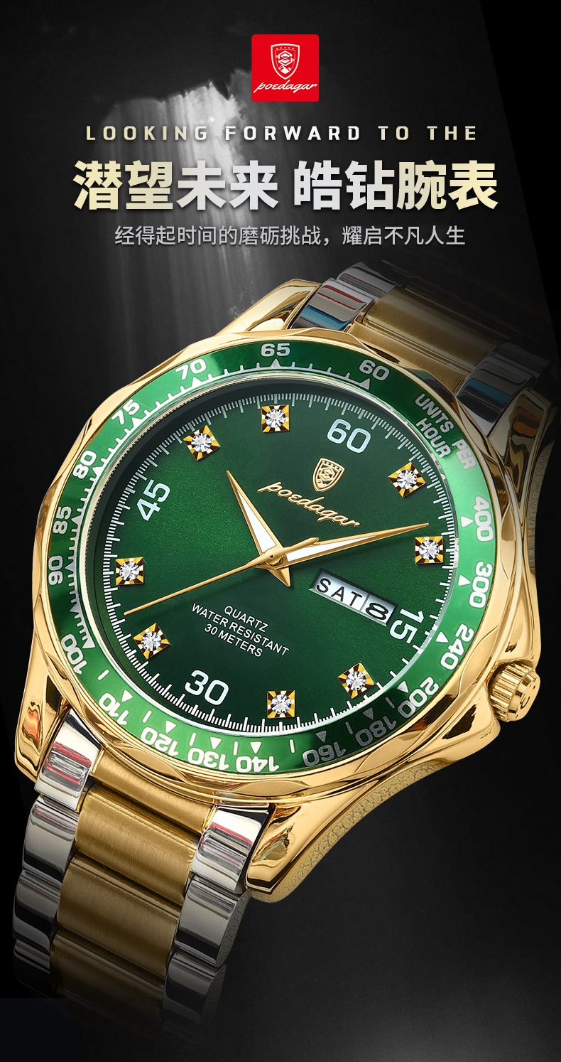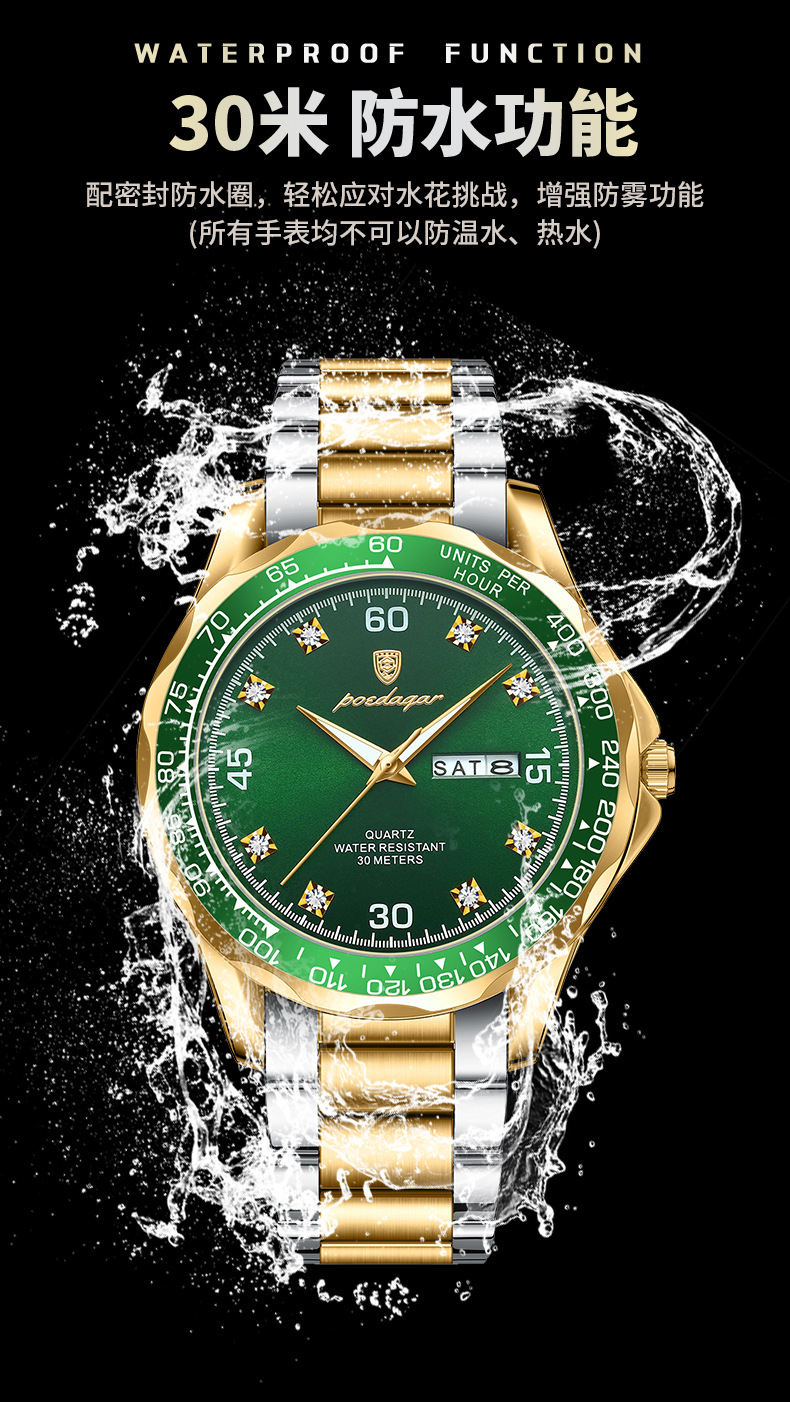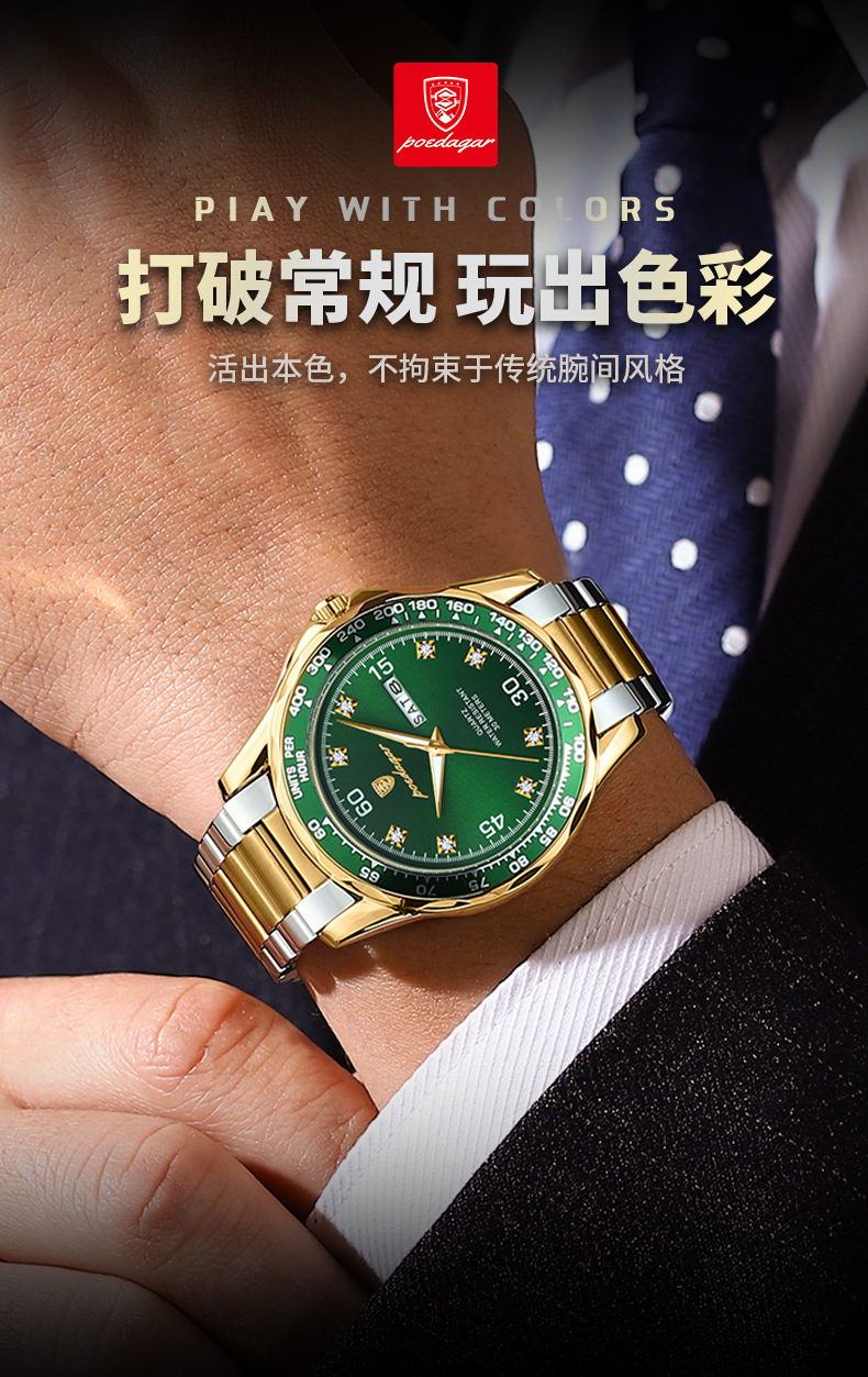 p963 silver case green surface steel belt