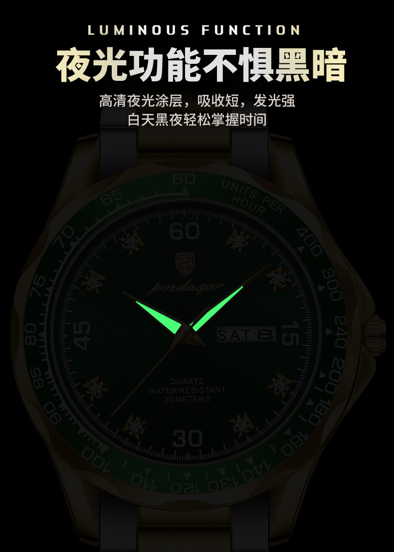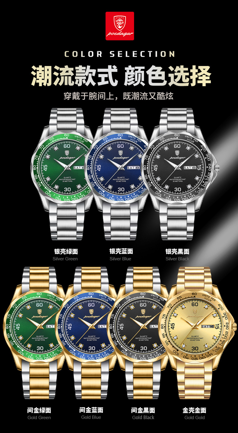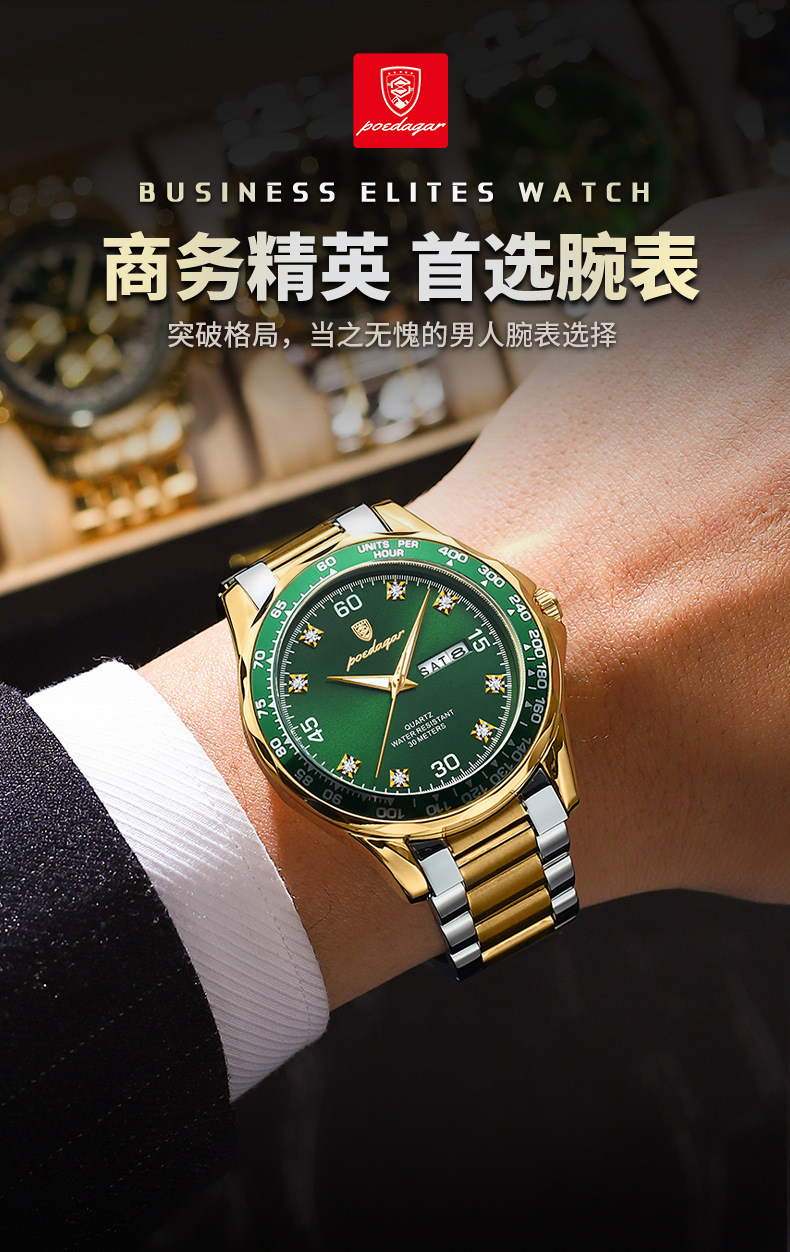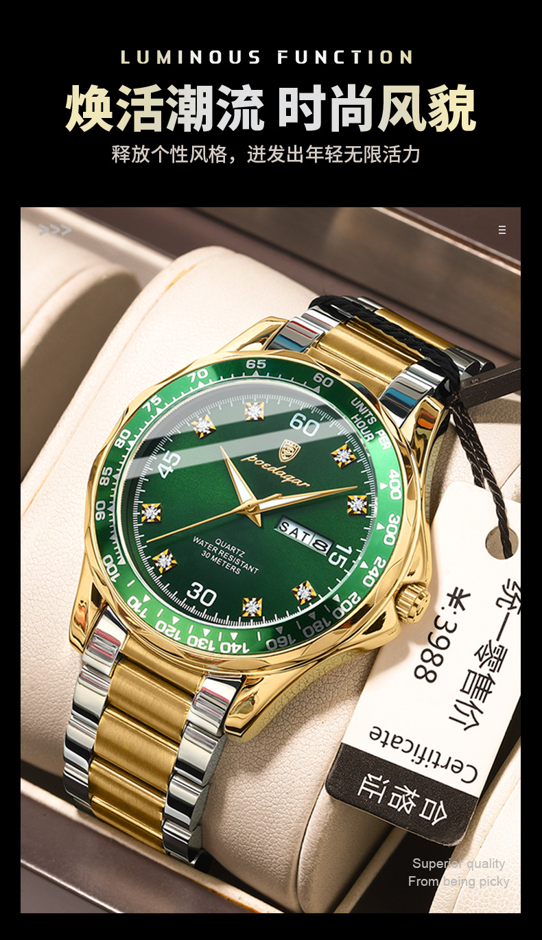 p963 silver case green surface steel belt