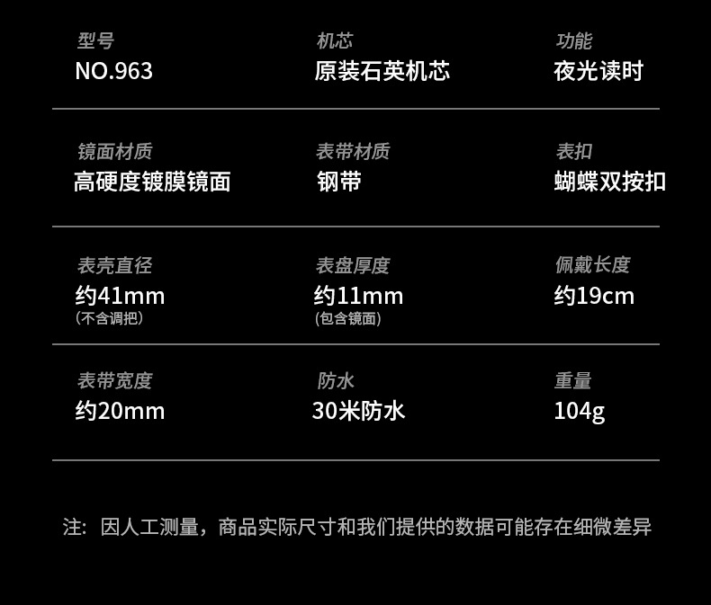 p963 silver case black surface steel belt