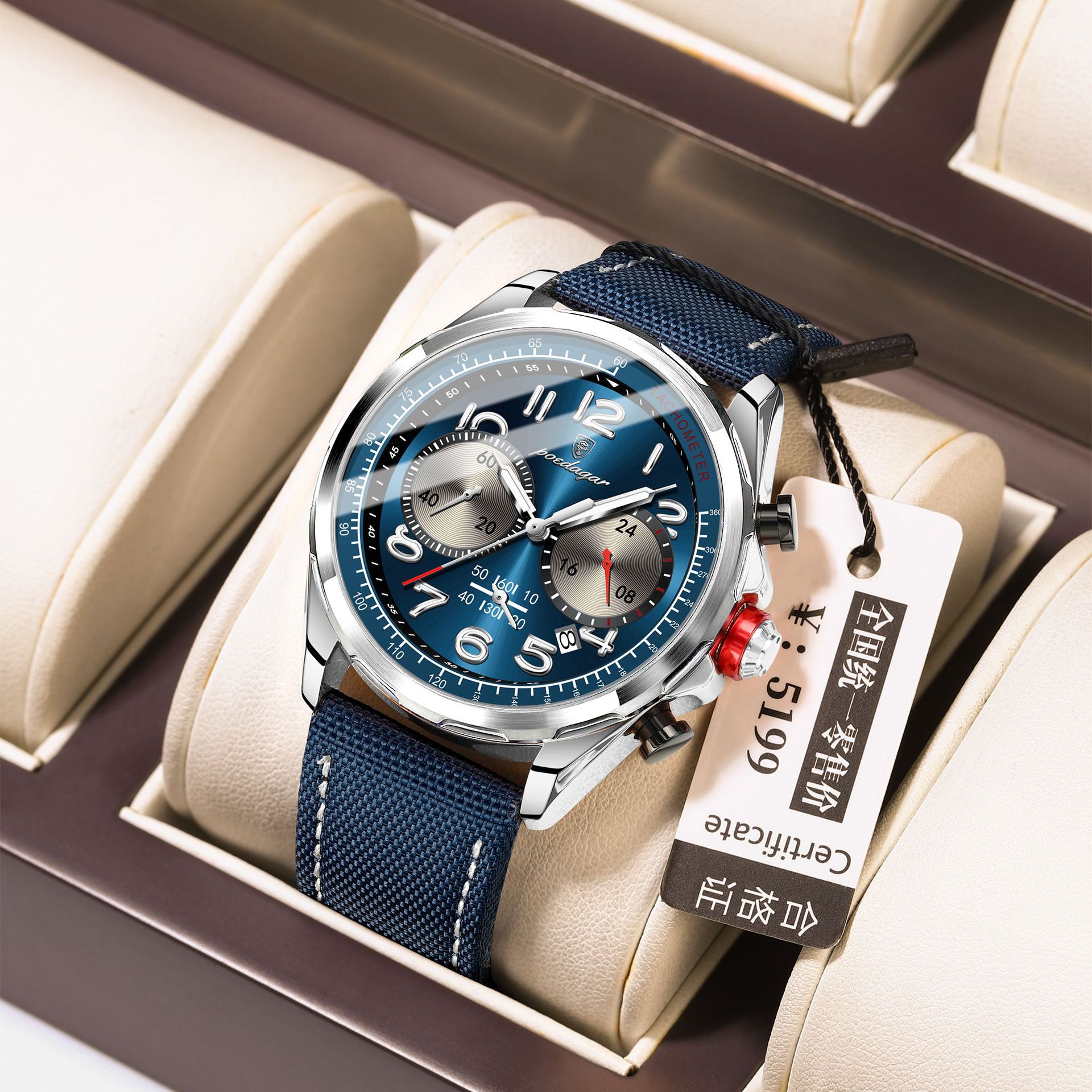 p862 silver case blue surface belt style