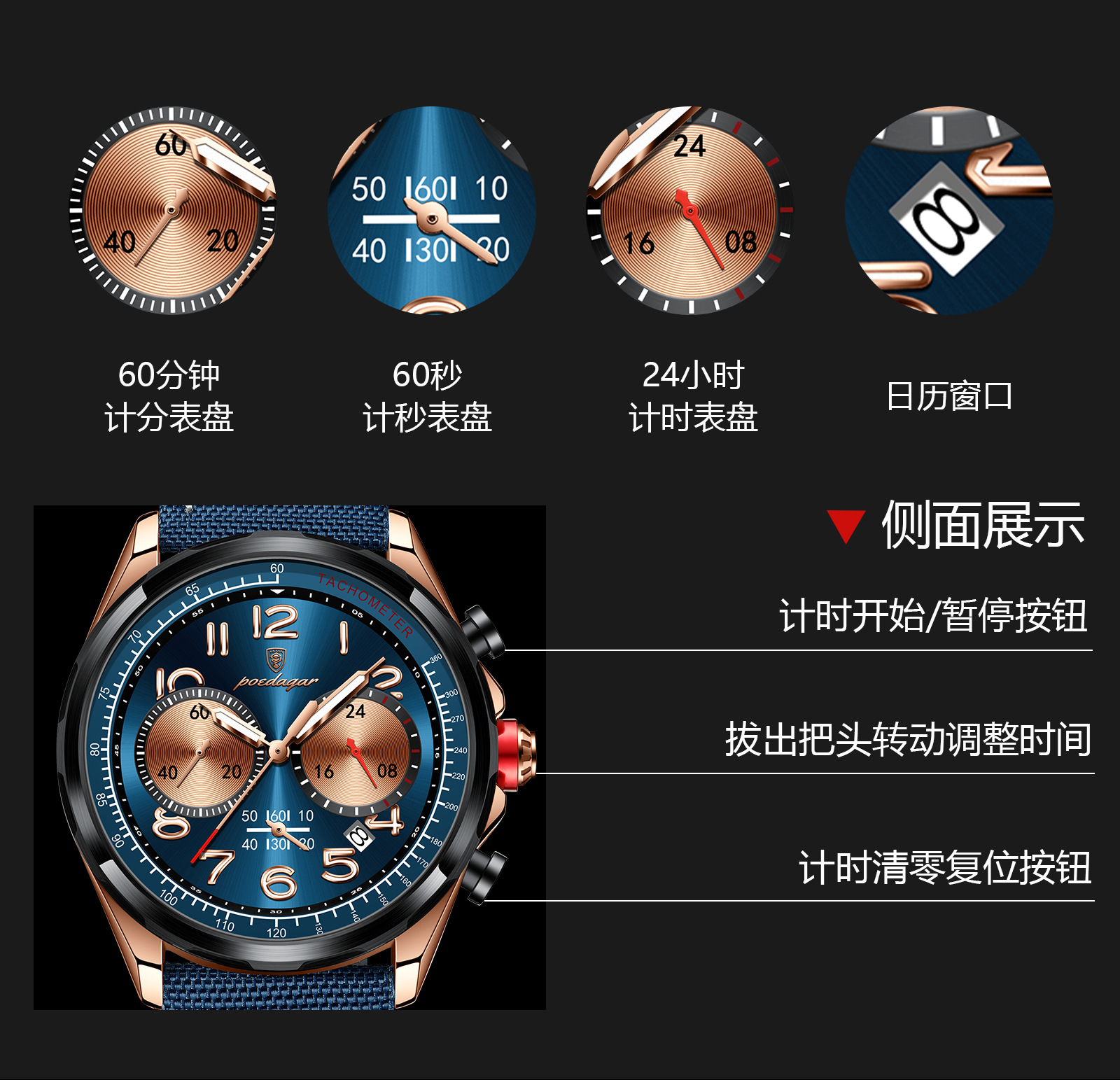 p862 rose gold blue face belt style