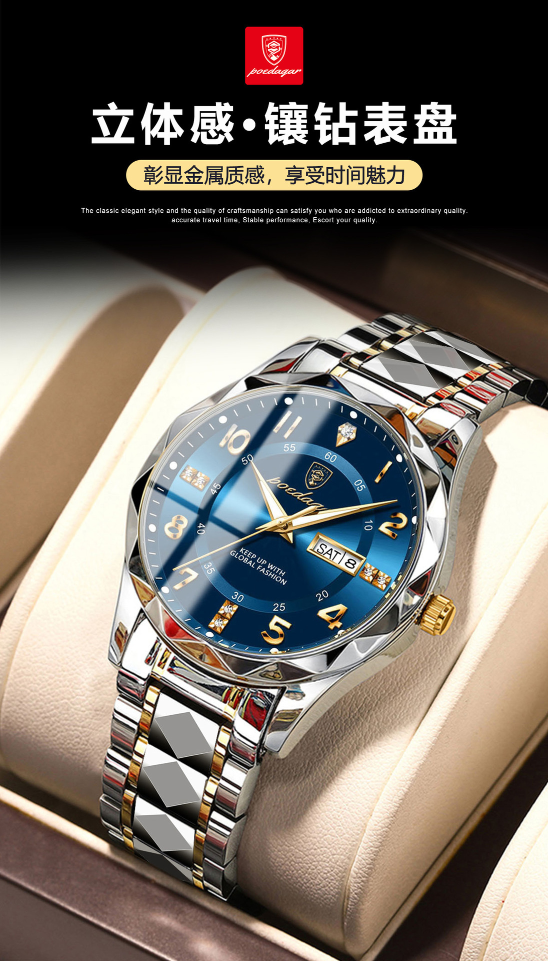 p858 gold shell blue surface steel belt
