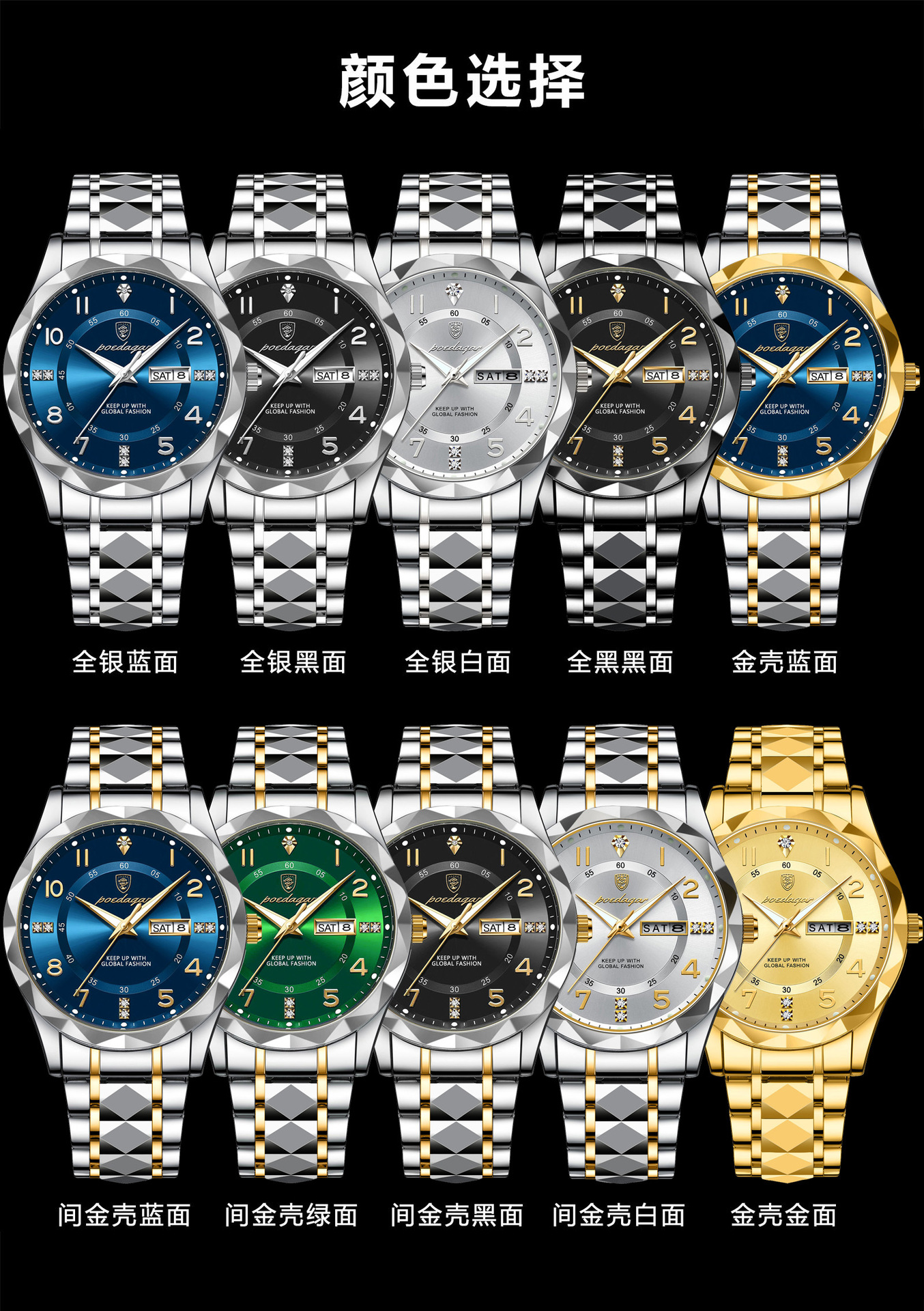 p858 silver case gold and blue surface steel belt