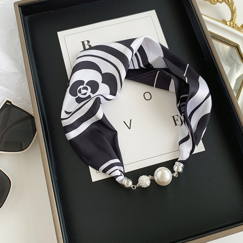 pearl buckle-black and white rose-white