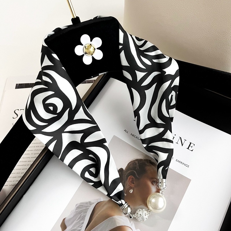 pearl buckle-black and white rose-white