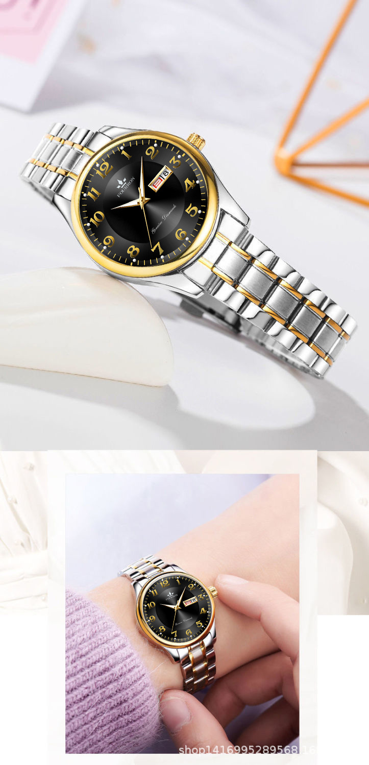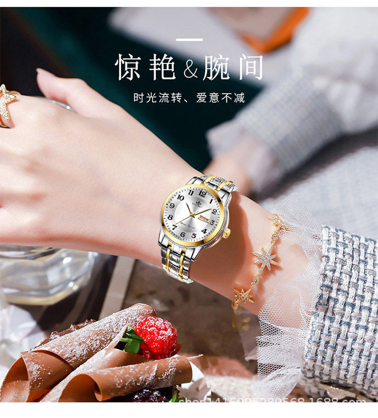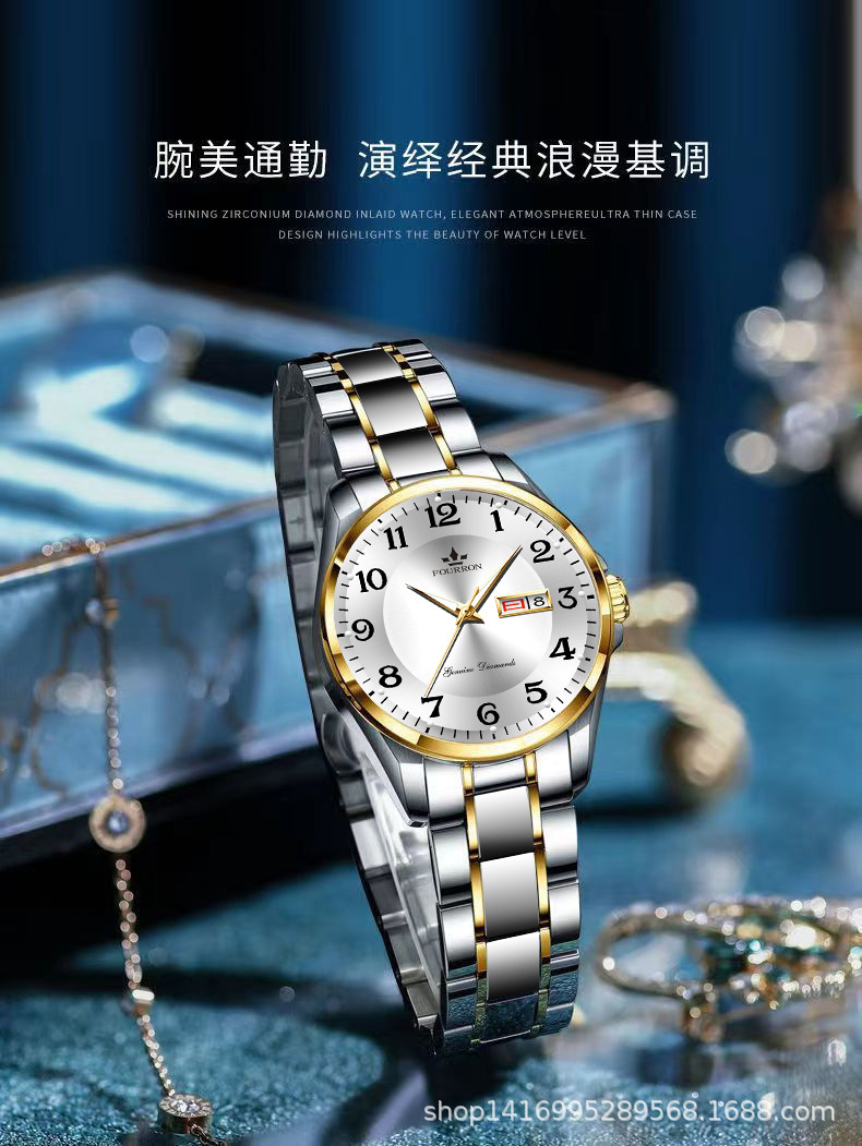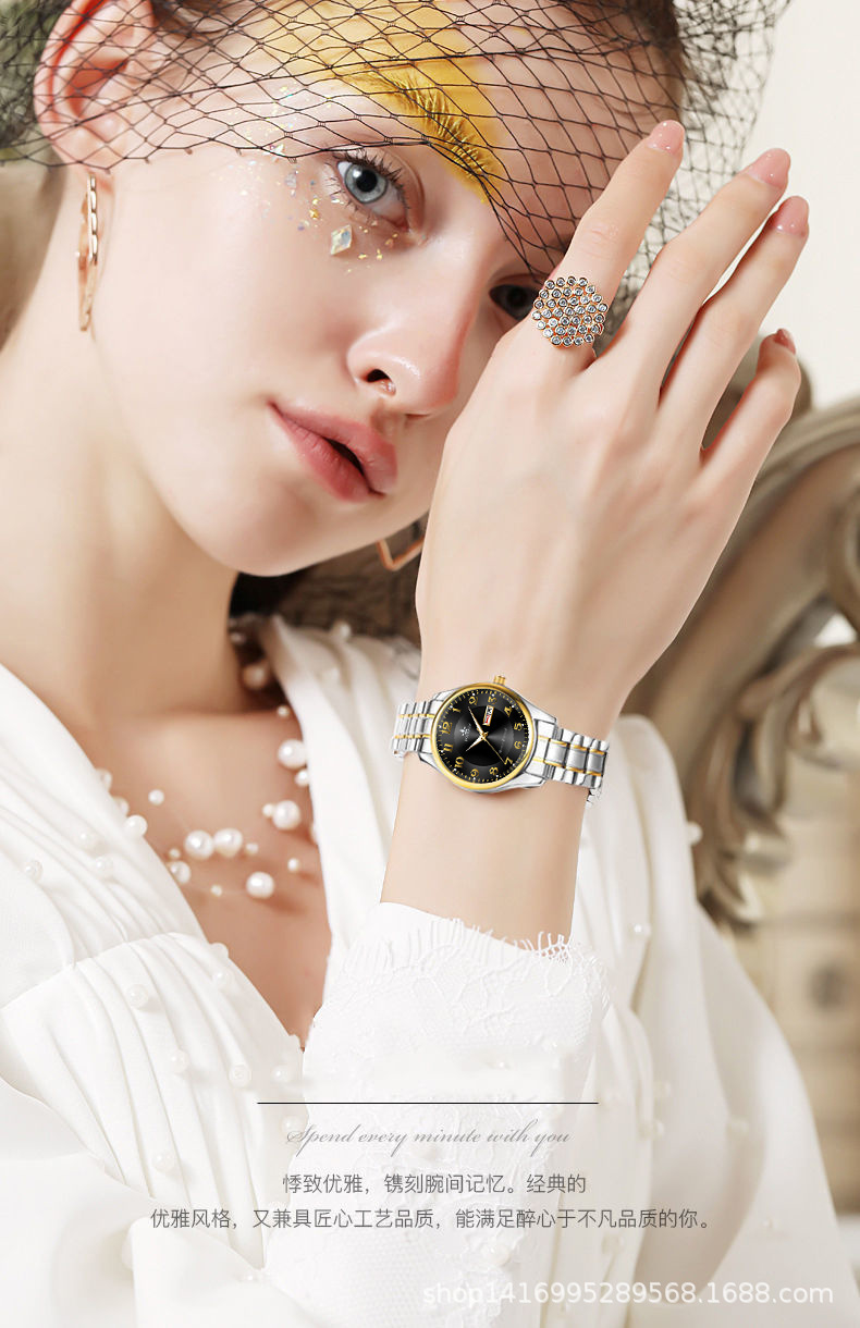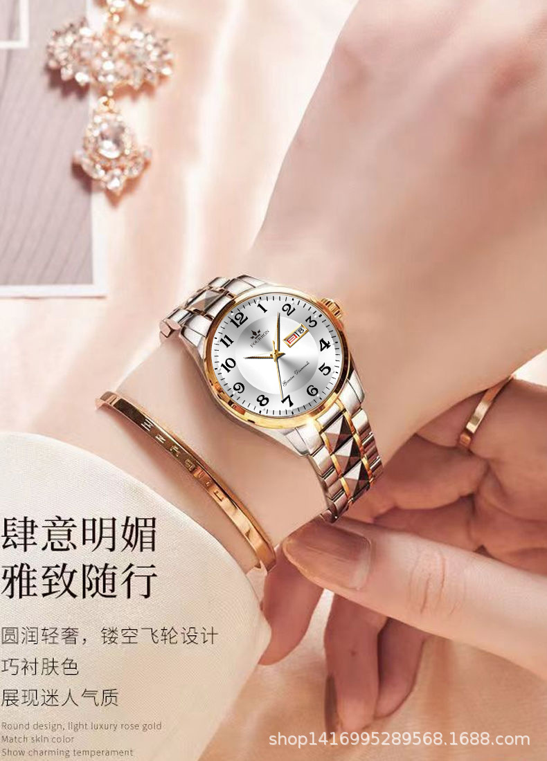 fashion women's double calendar luminous waterproof fashion simple thin tiktok hot sale wholesale manufacturer quartz watch