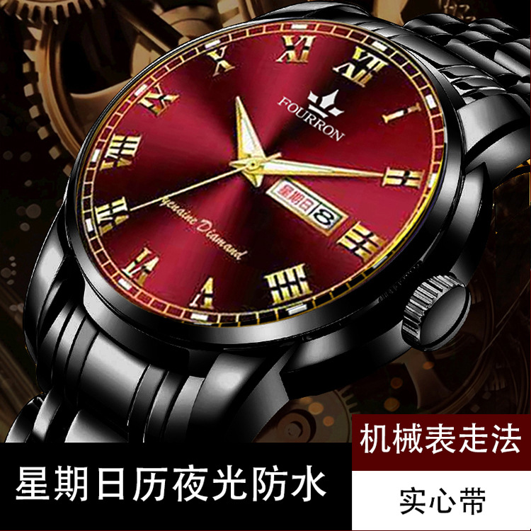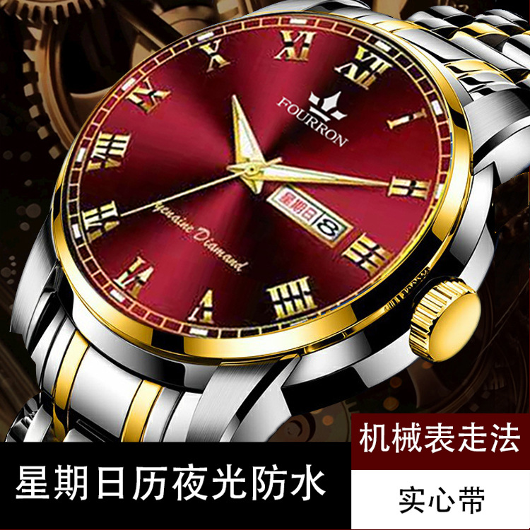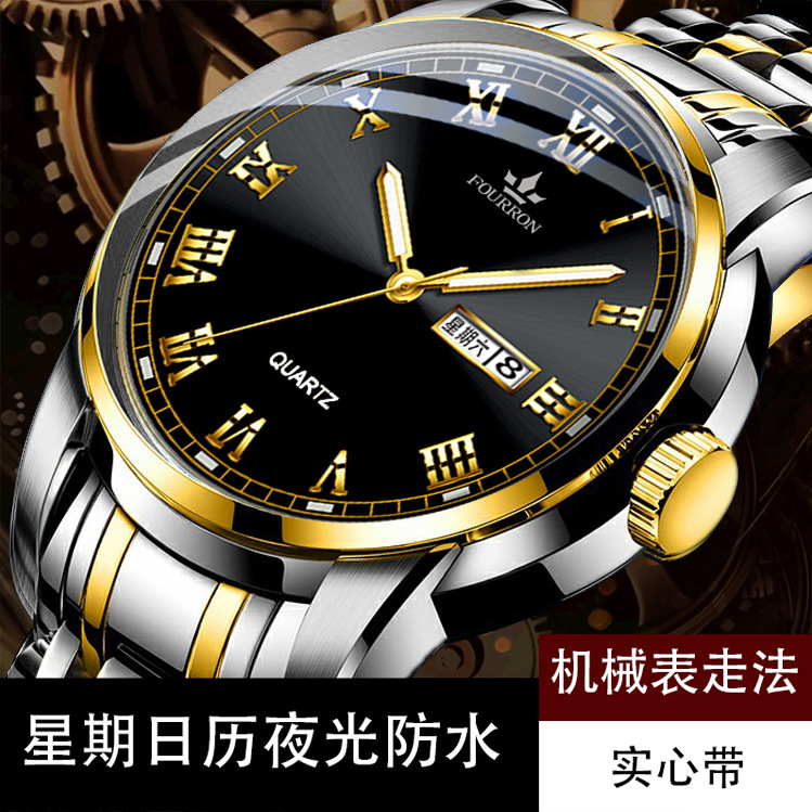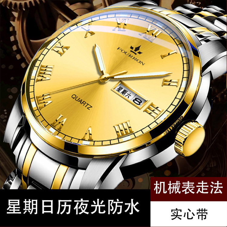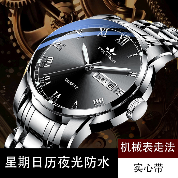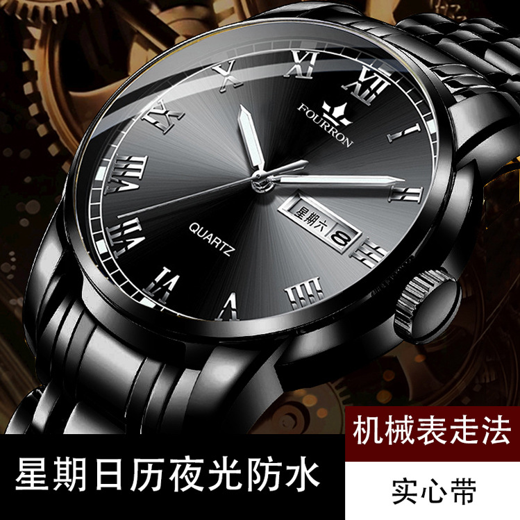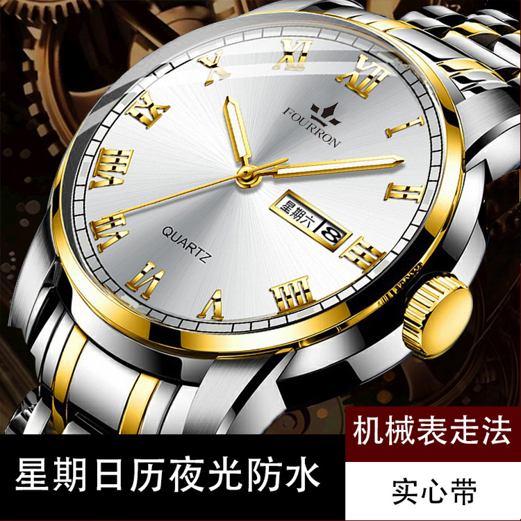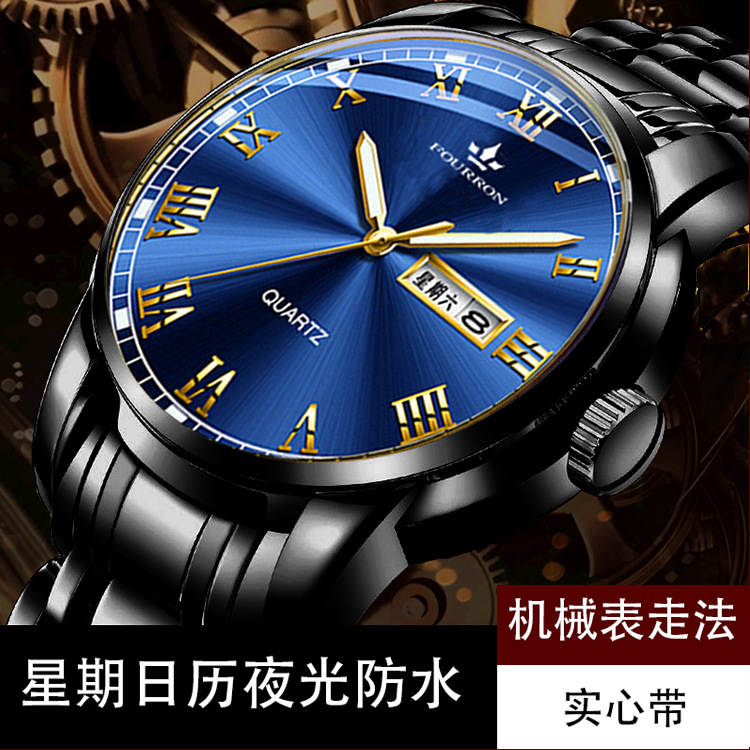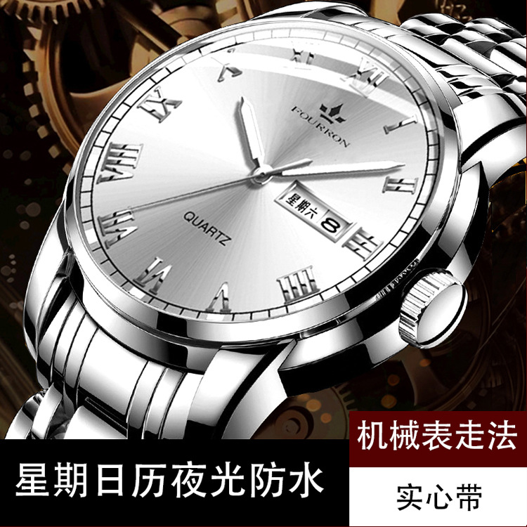 double calendar men's watch luminous korean fashion thin solid band business quartz watch electronic hot sale foreign trade delivery