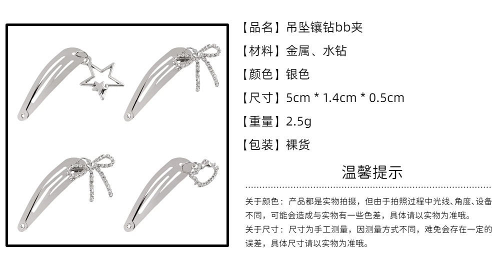 3# diamond bow pendant bb clip