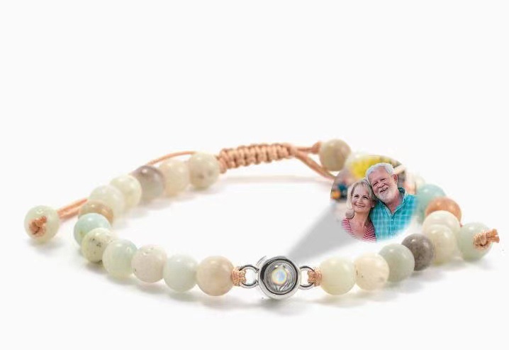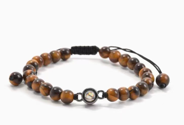 amber brown 8mm + titanium steel projection stone