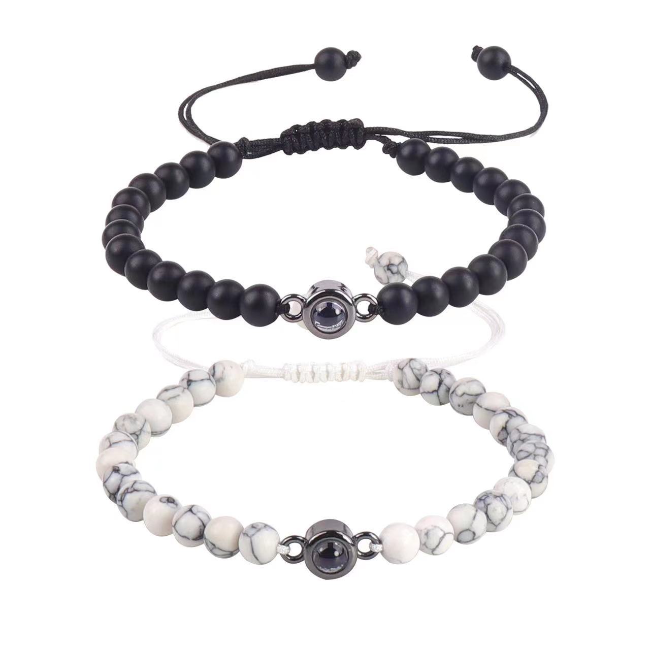 black and white lovers suit + titanium steel projection stone