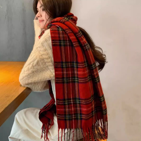 wj-0091 plaid scarf ankela red