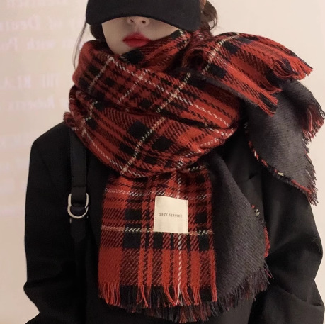 wj-0180 plaid scarf-double-sided red