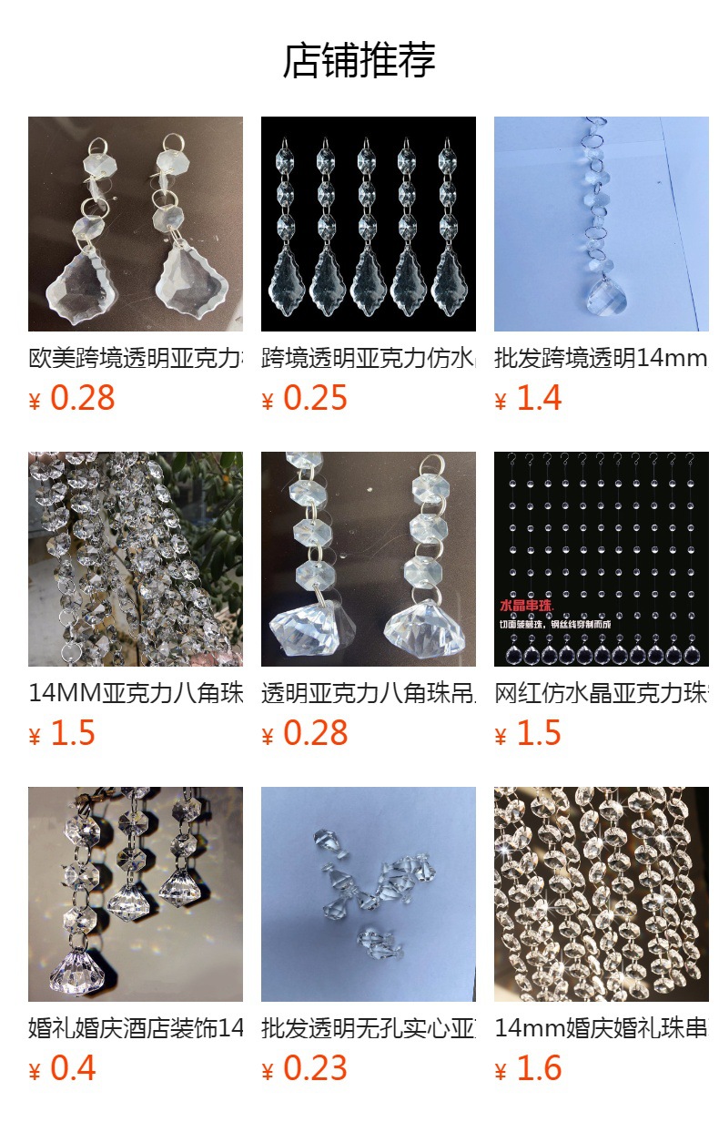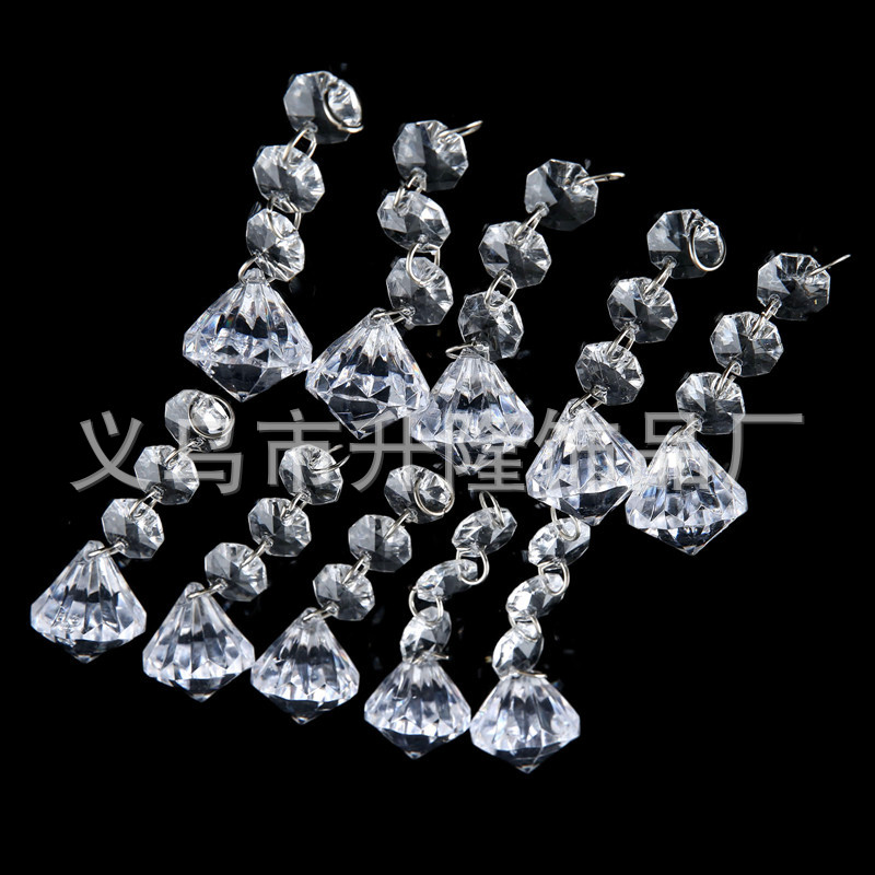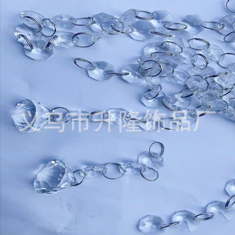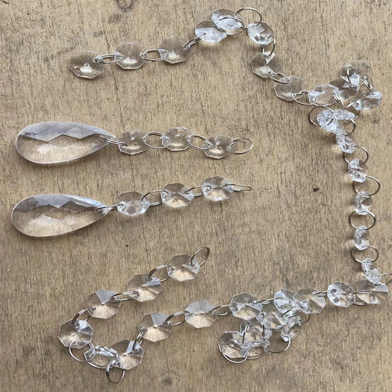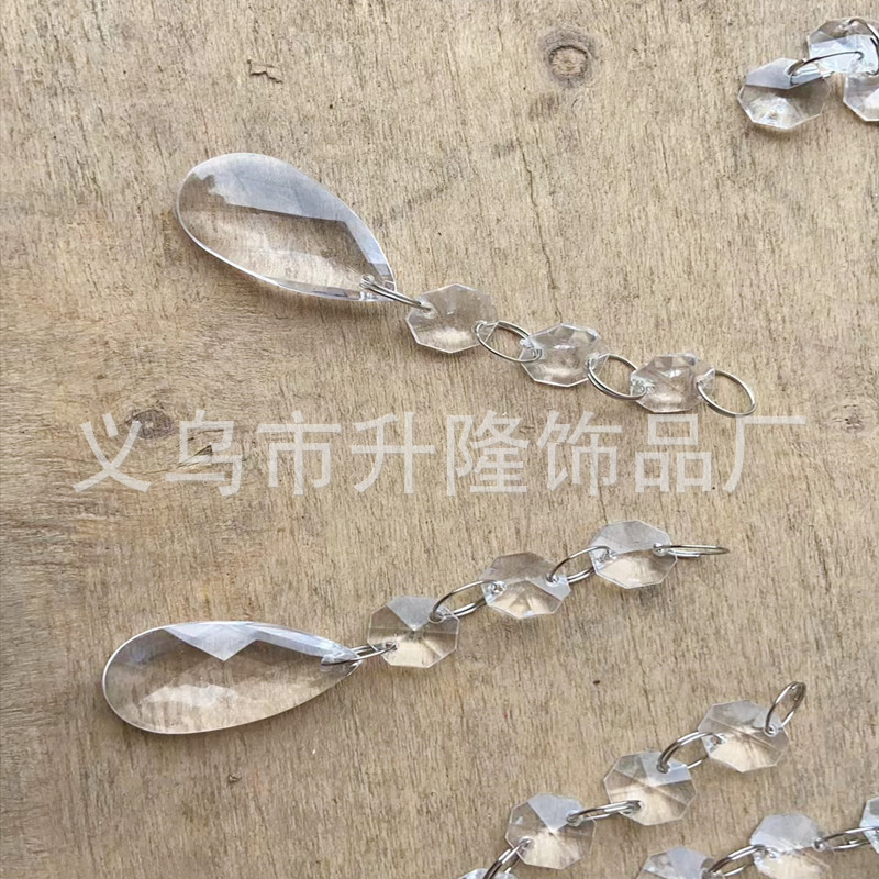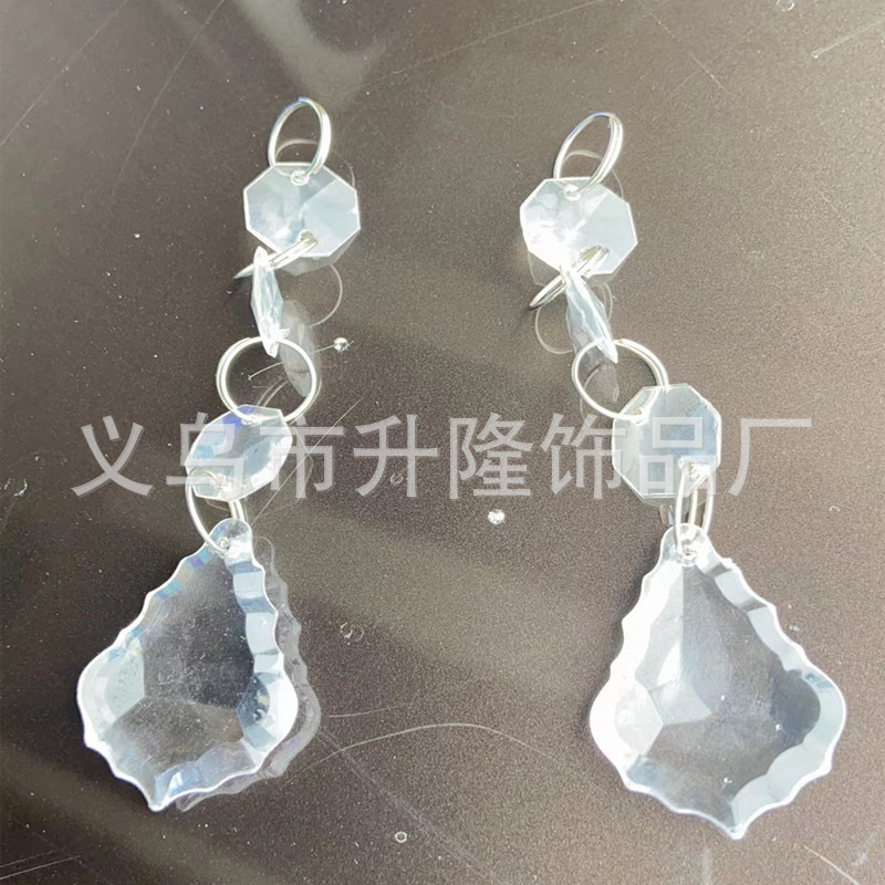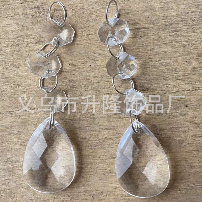 transparent 3 14mm octagonal beads +4 12mm rings +22 * 38mm tear drops