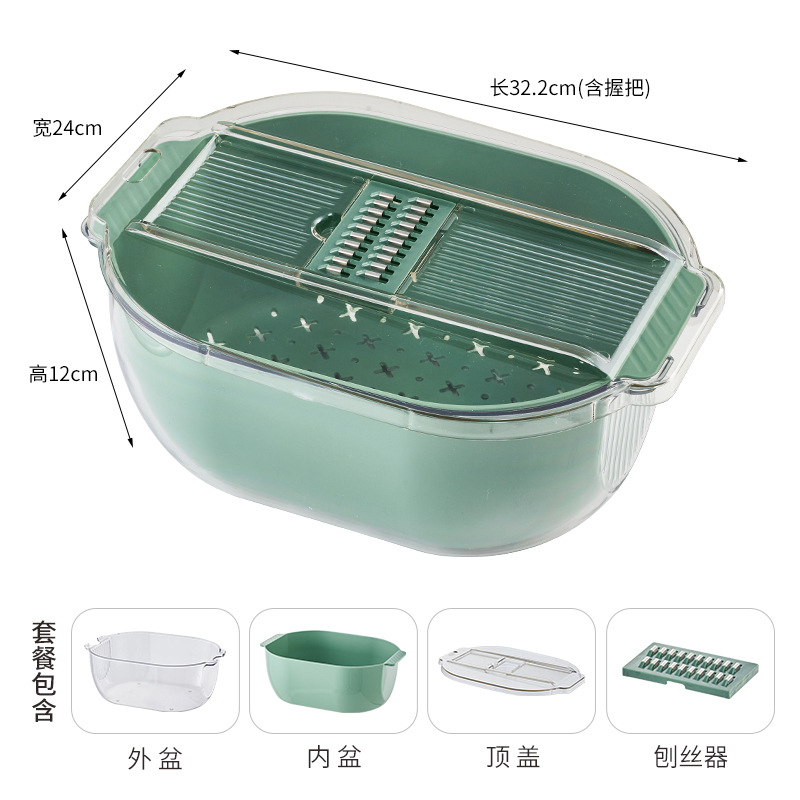 green with slicer drain basket [slicer cover + transparent pet outer basin + inner basket]]