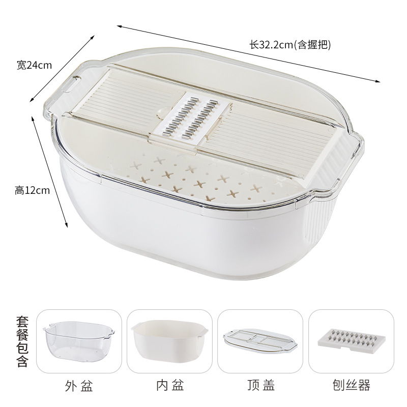 white with slicer drain basket [slicer cover + transparent pet outer basin + inner basket]]