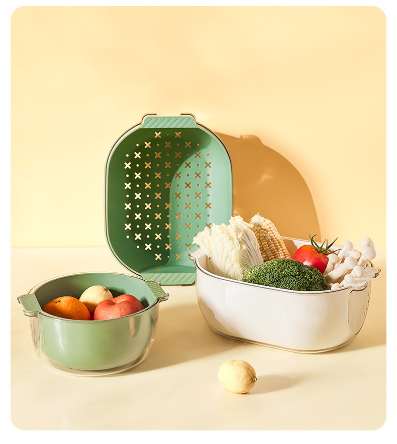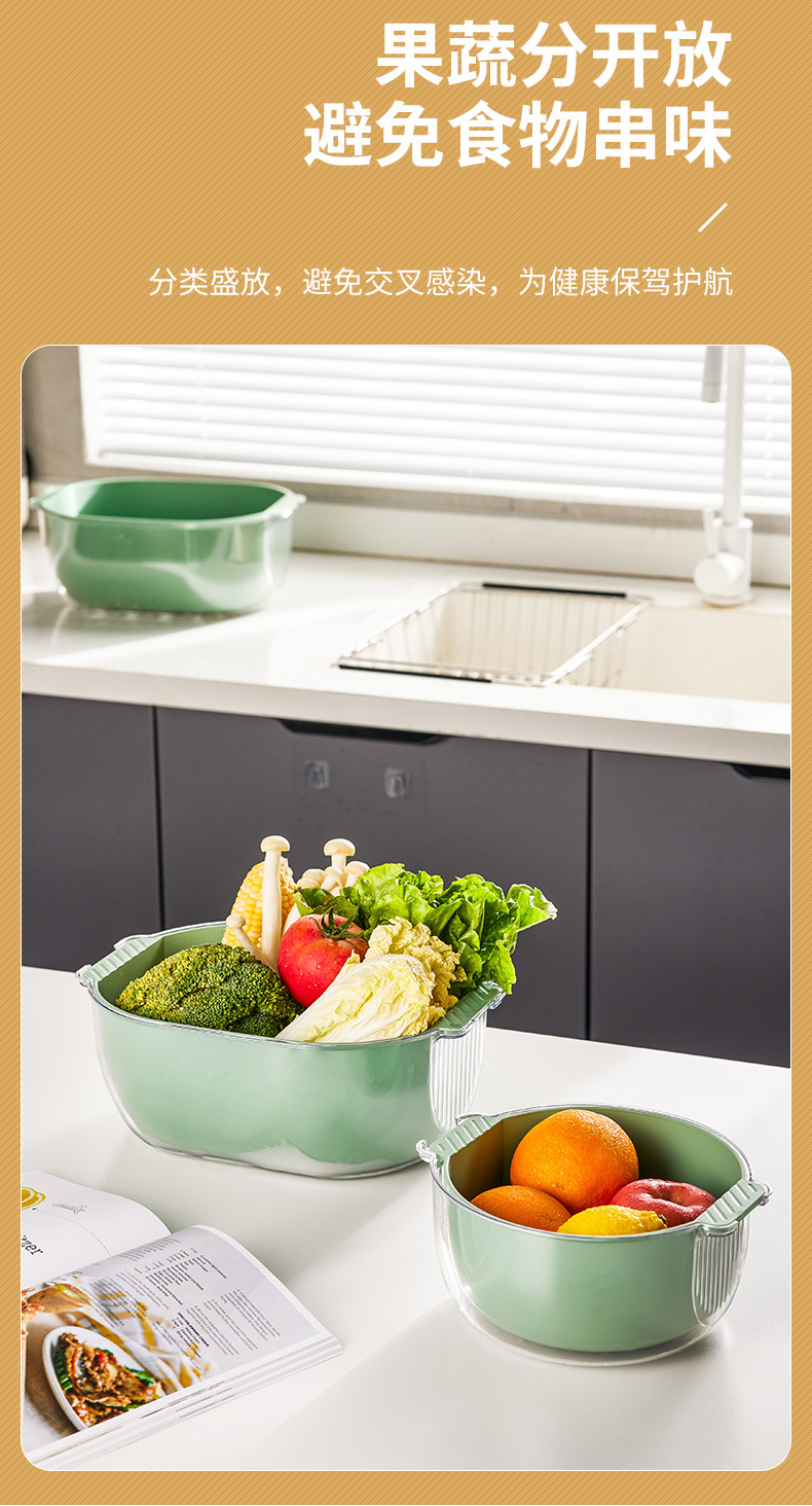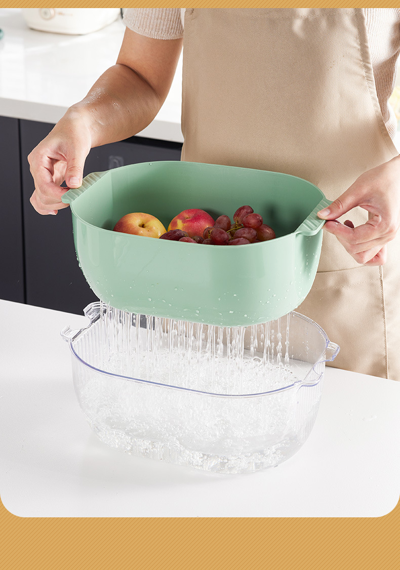 green rectangular double layer suit [transparent pet outer basin + inner basket]]