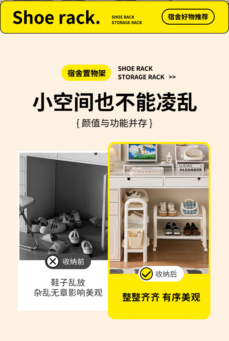 | 2-layer shoe rack (with wire-wrap board 1 piece +2 hooks, with wheels | CN¥ 25.0 | 99990 rice available |