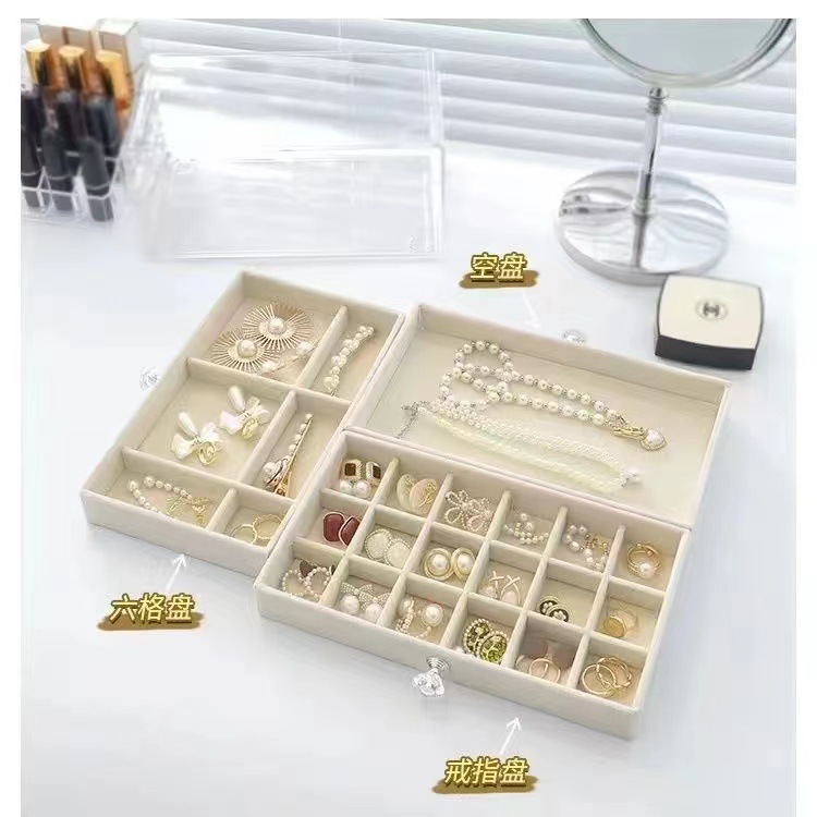 beige three-layer jewelry box (18 grid +6 grid + empty plate)