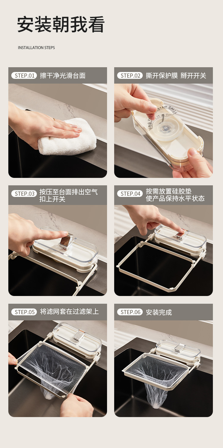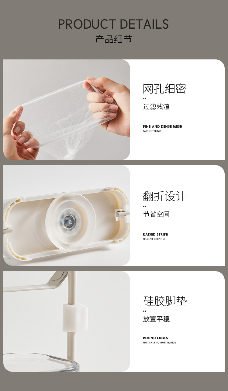 suction cup sink filter rack-milk silver