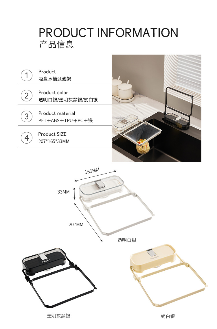 suction cup sink filter rack-transparent gray black silver