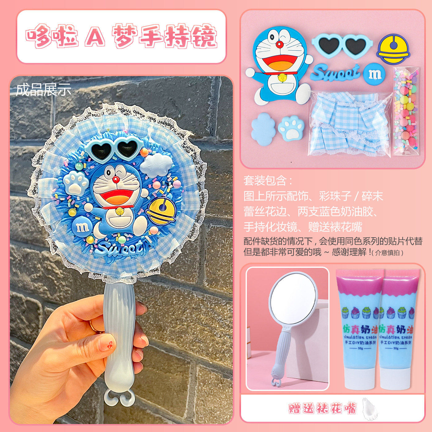 [card bag packaging] light blue handheld mirror + doraemon material package + gift decorating nozzle