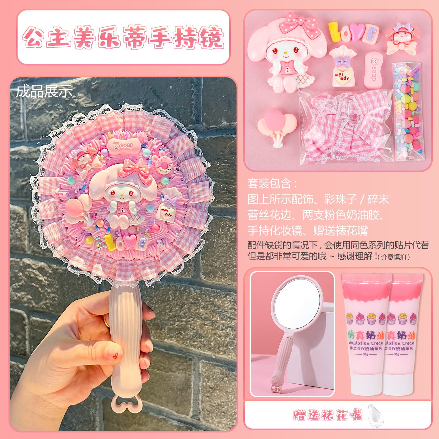 [card bag packaging] pink handheld mirror + princess melody material package + gift decorating nozzle