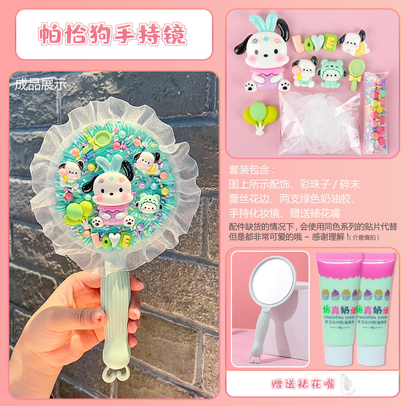 [card bag packaging] light green handheld mirror + pacha dog material package + gift decorating nozzle