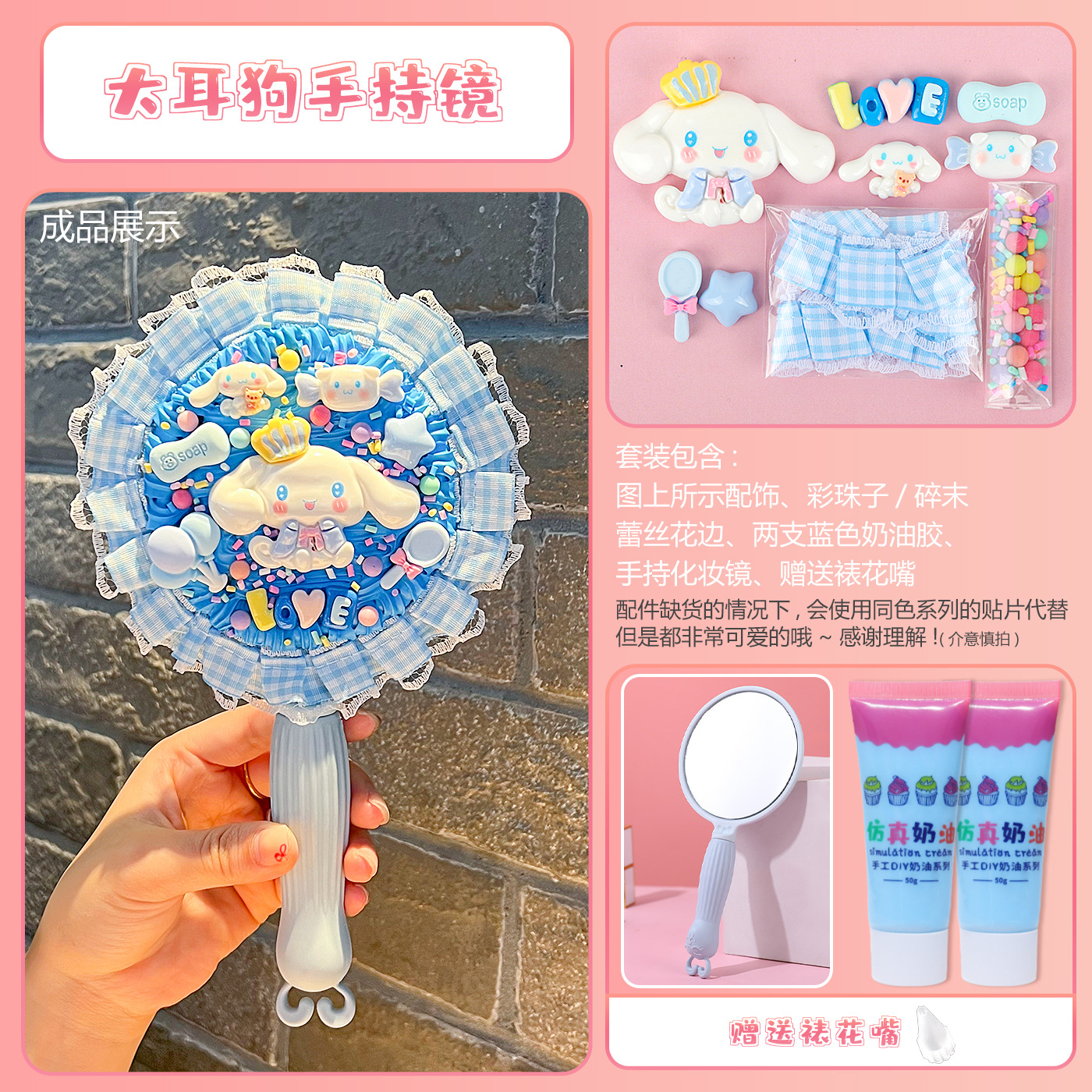 [card bag packaging] light blue handheld mirror + big ear dog material package + free decorating nozzle