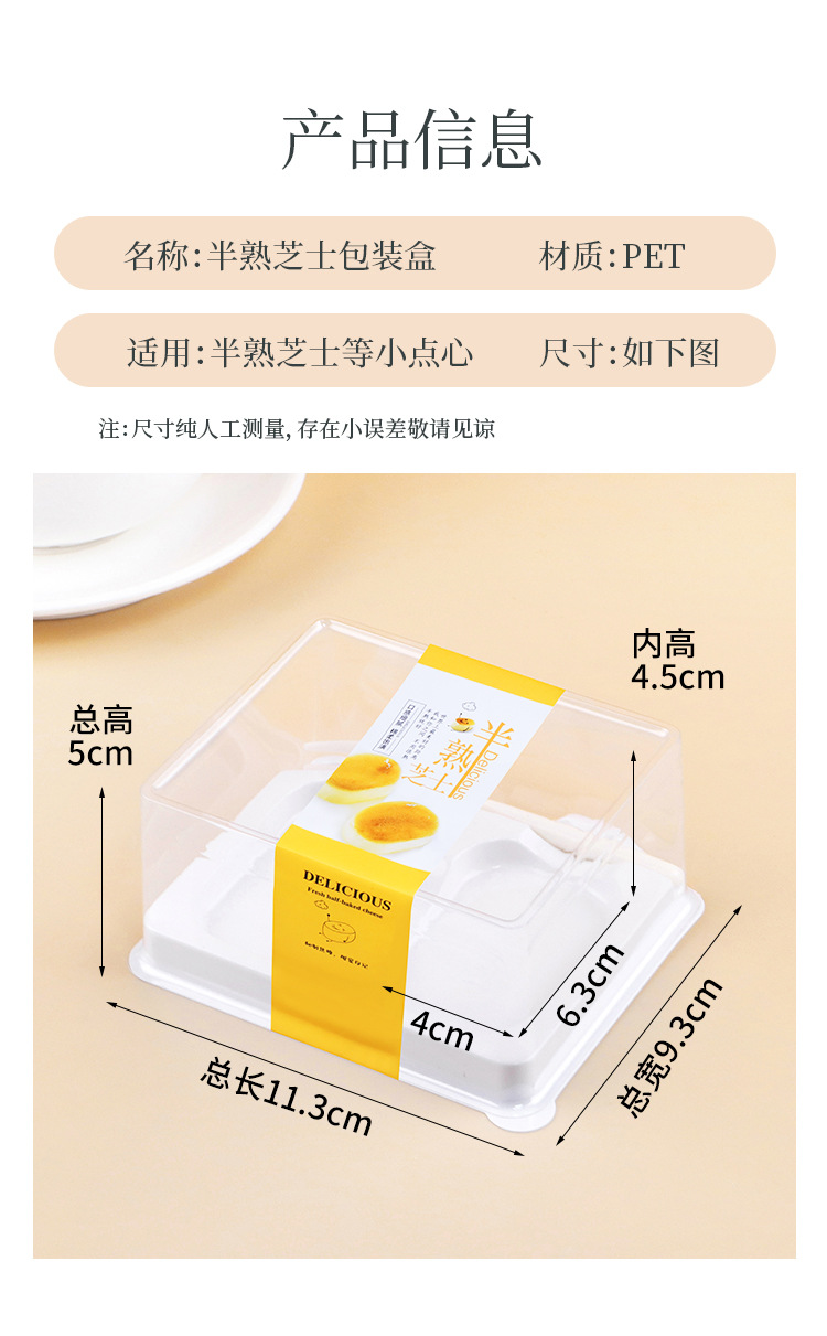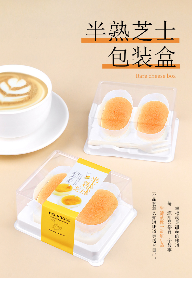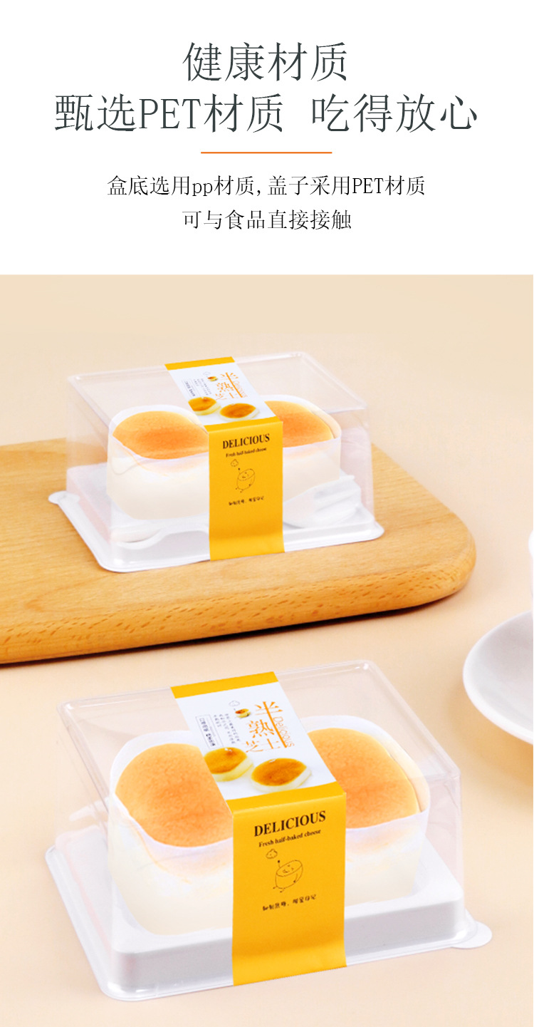 half cooked cheese packing box 2 tablets with card holder waist seal transparent anti-fog pastry dessert disposable take out box
