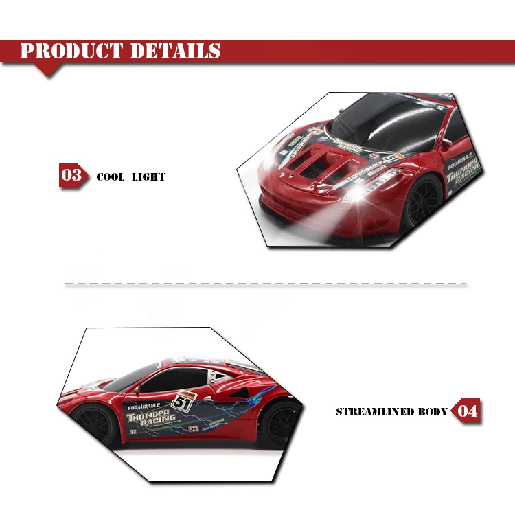 Product features: | High speed racing car, Cool shape, Cool lights,Go forward/backward,Turn left/right. |
