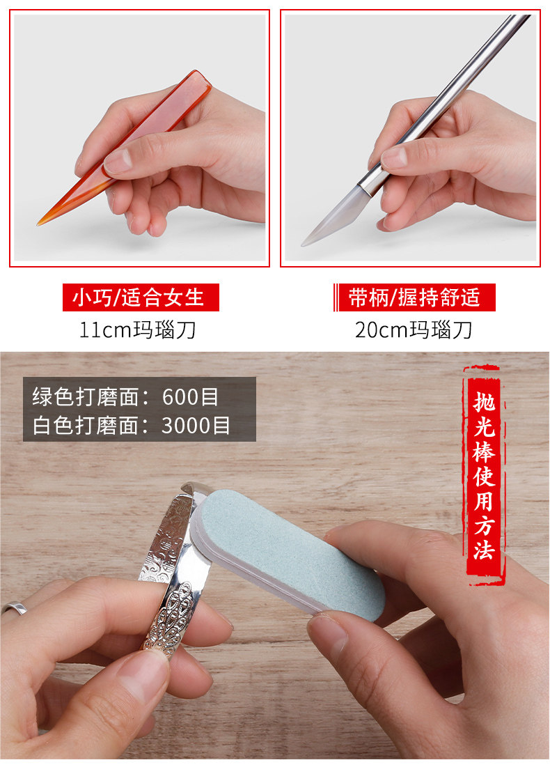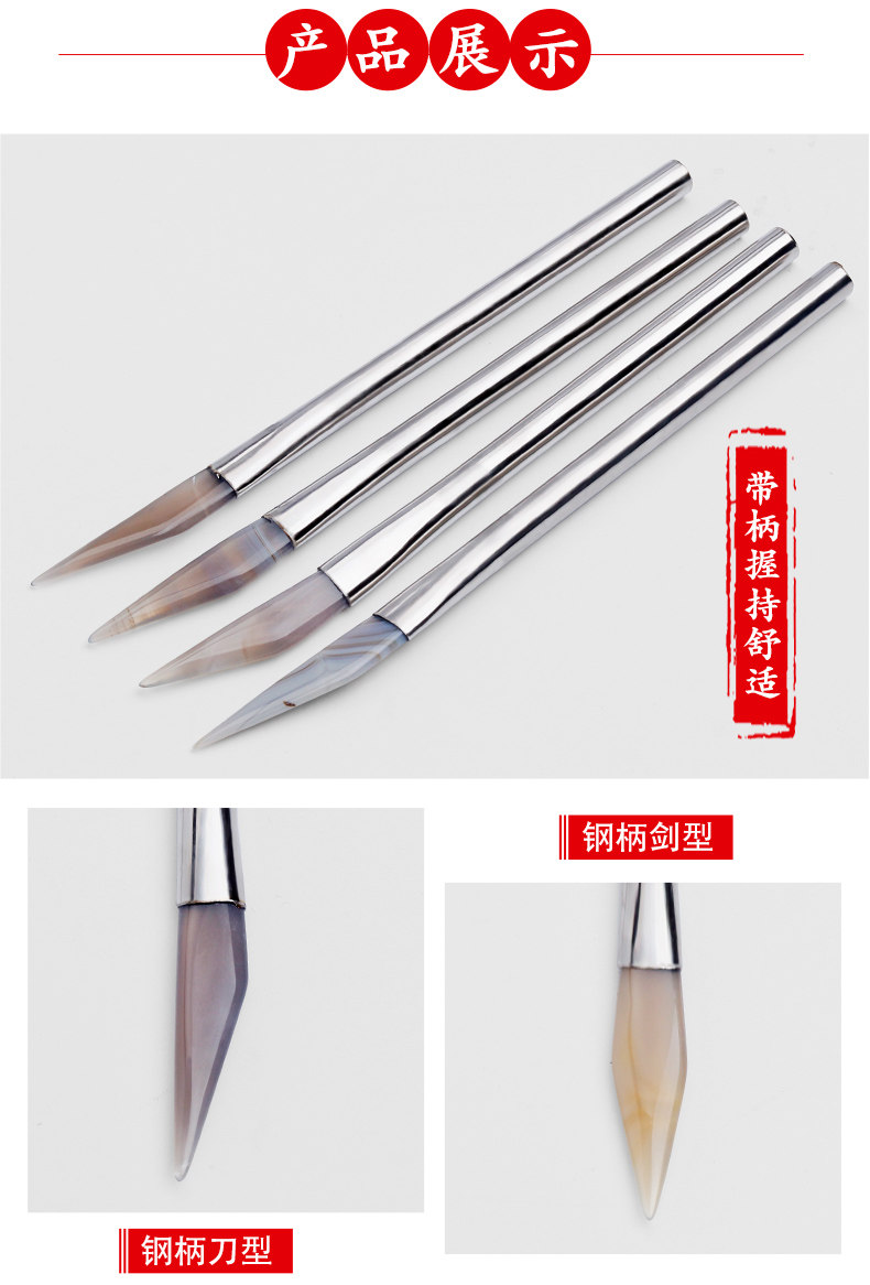 knife type steel handle agate knife