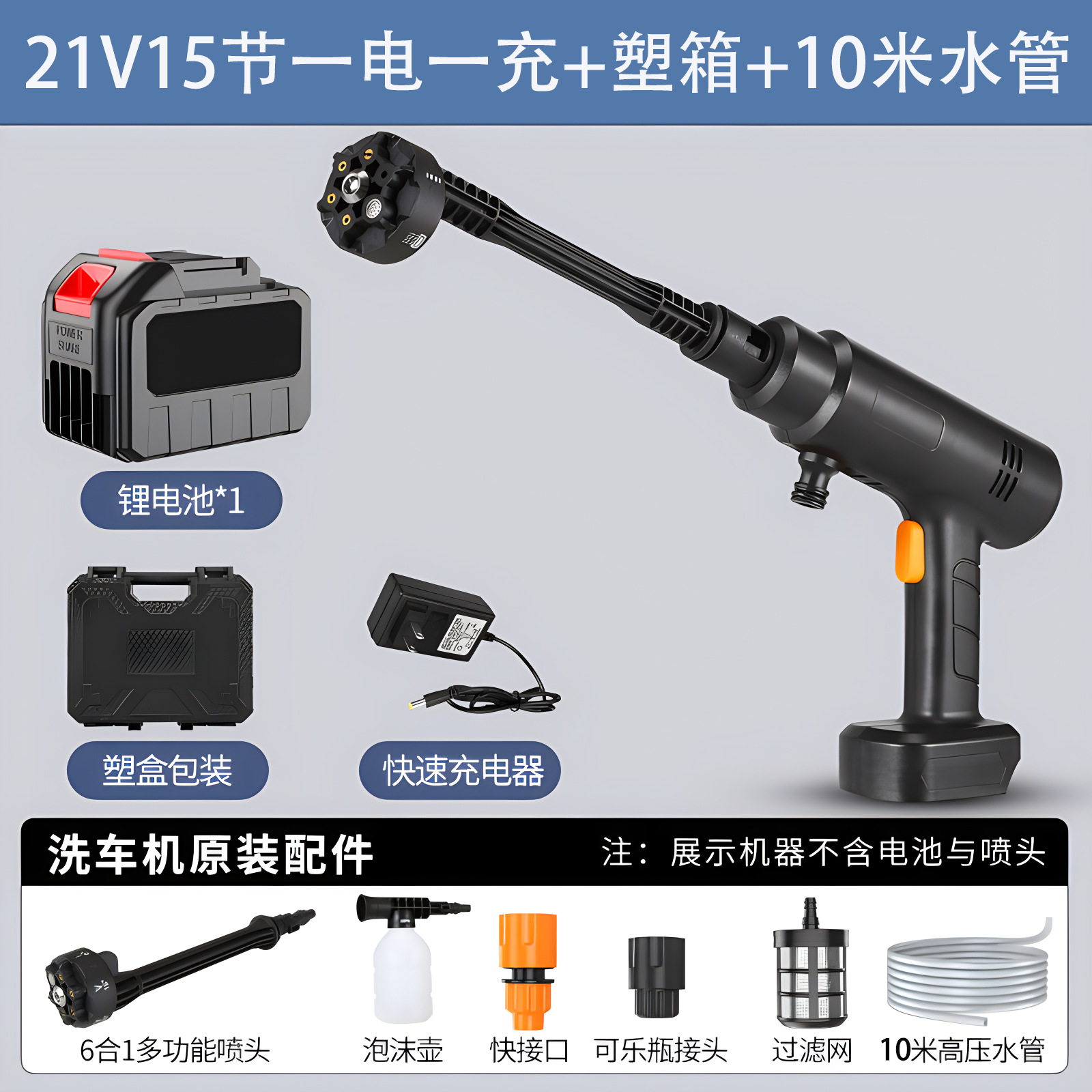 [black] [21v] 1200 capacity 15 sections 1 electricity 1 charge + plastic box +10 m water pipe