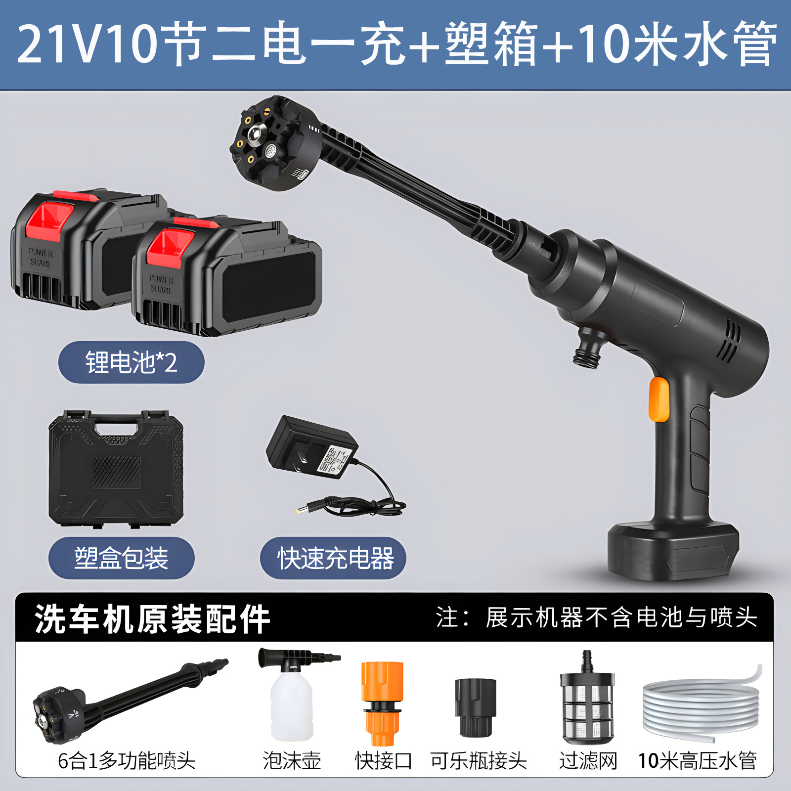 [black] [21v] 1200 capacity 10 sections 2 electricity 1 charge + plastic box +10 m water pipe