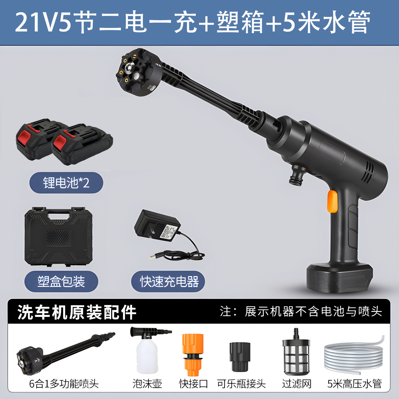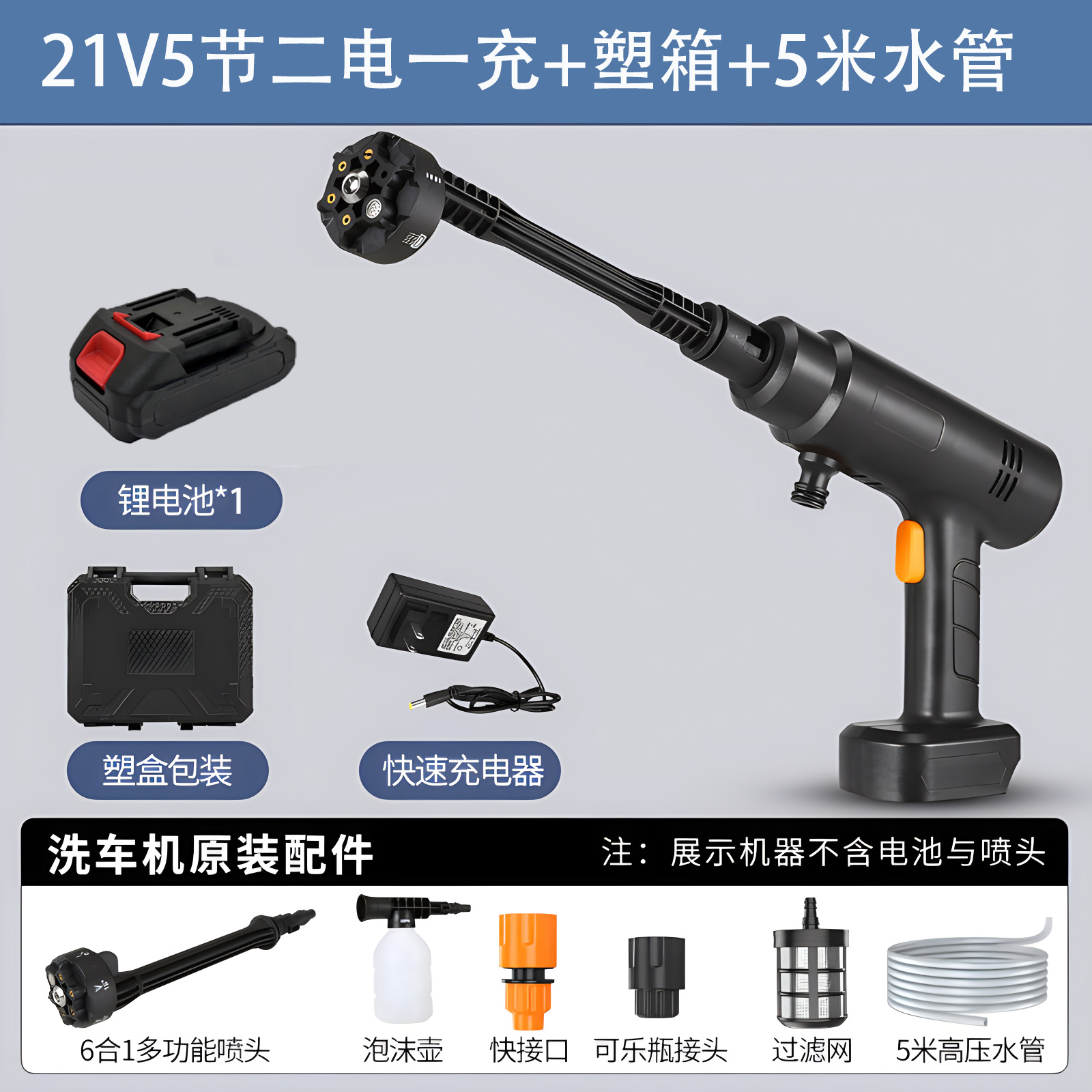 [black] [21v] 1300 capacity 5 sections 2 electricity 1 charge + plastic box +5 m water pipe