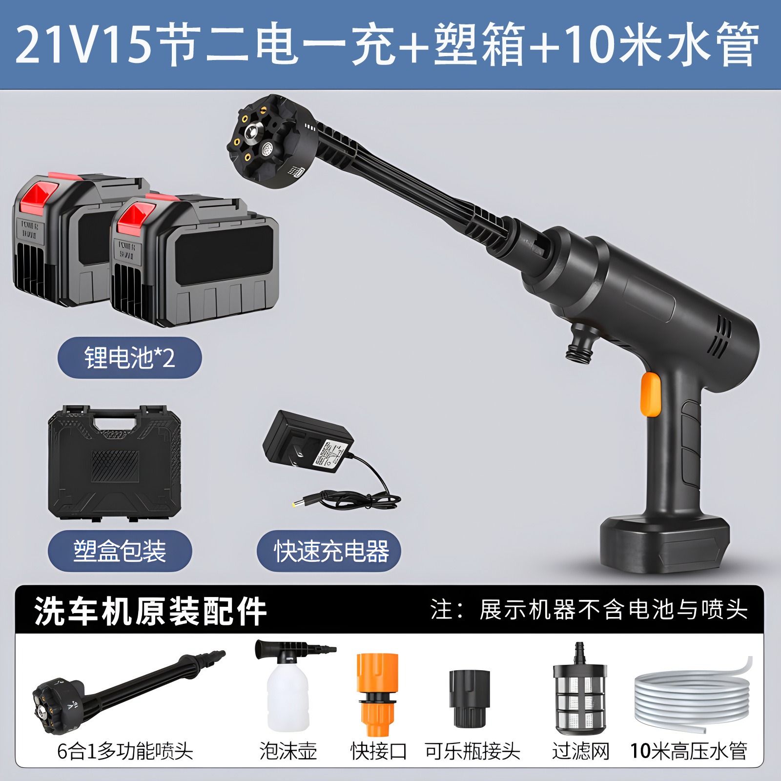 [black] [21v] 1200 capacity 15 sections 2 electricity 1 charge + plastic box +10 m water pipe