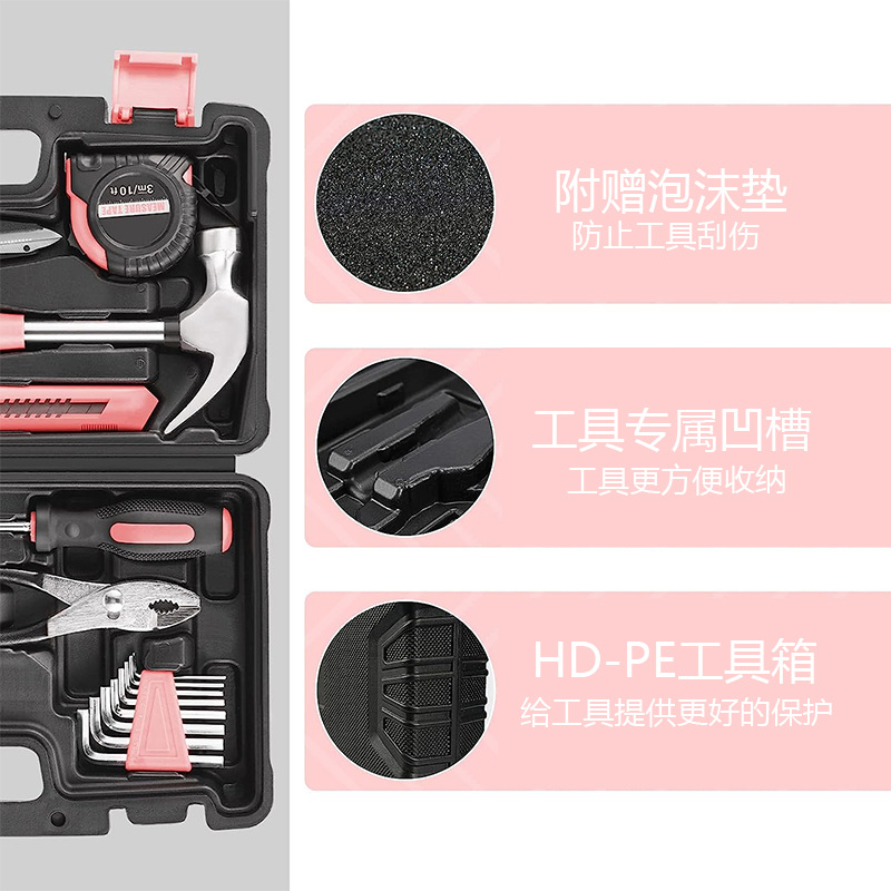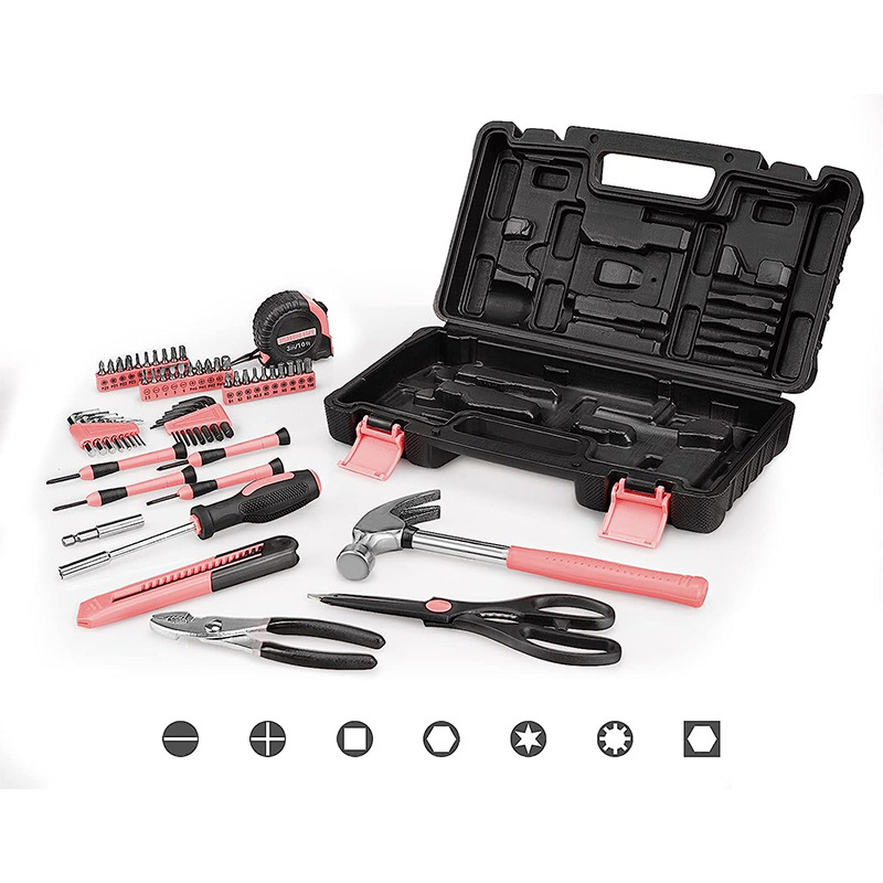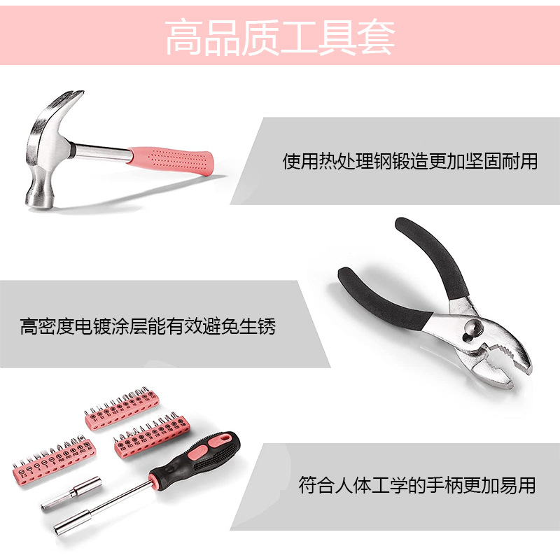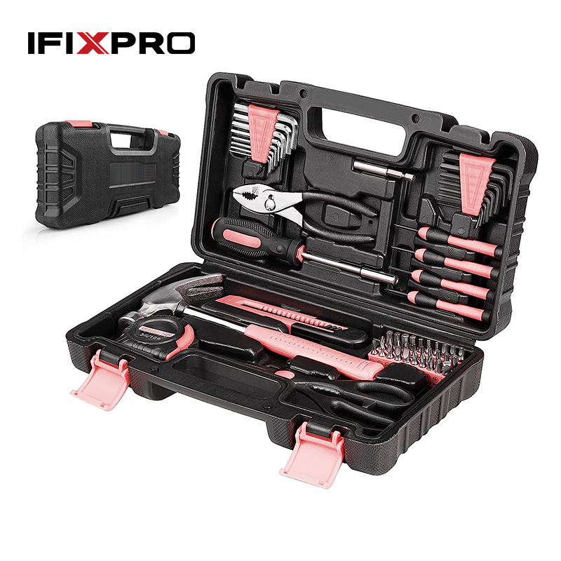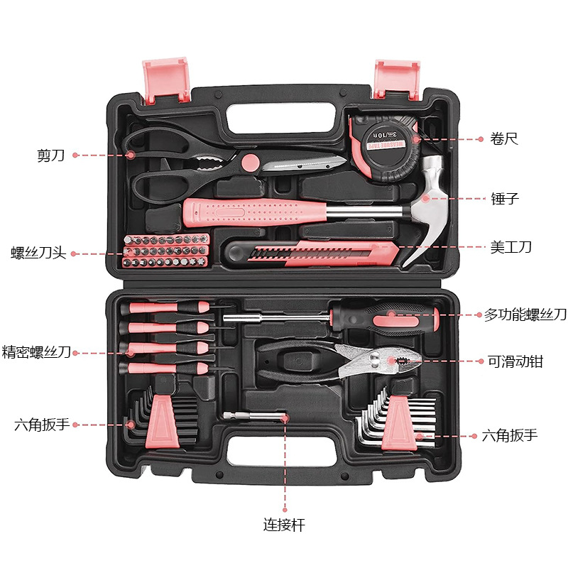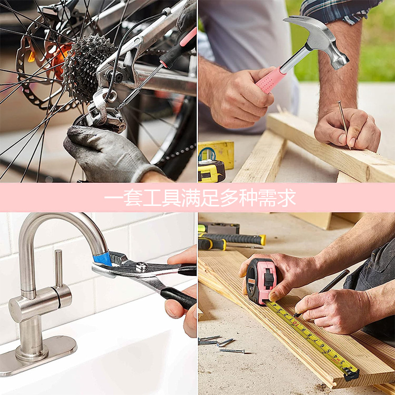 cross-border hot selling pink 57-piece set hardware kits diy multifunctional household maintenance tools suit