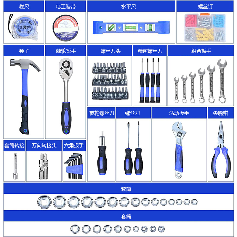 146-piece tool kit universal household hand tool kit plastic case multifunctional hardware kits