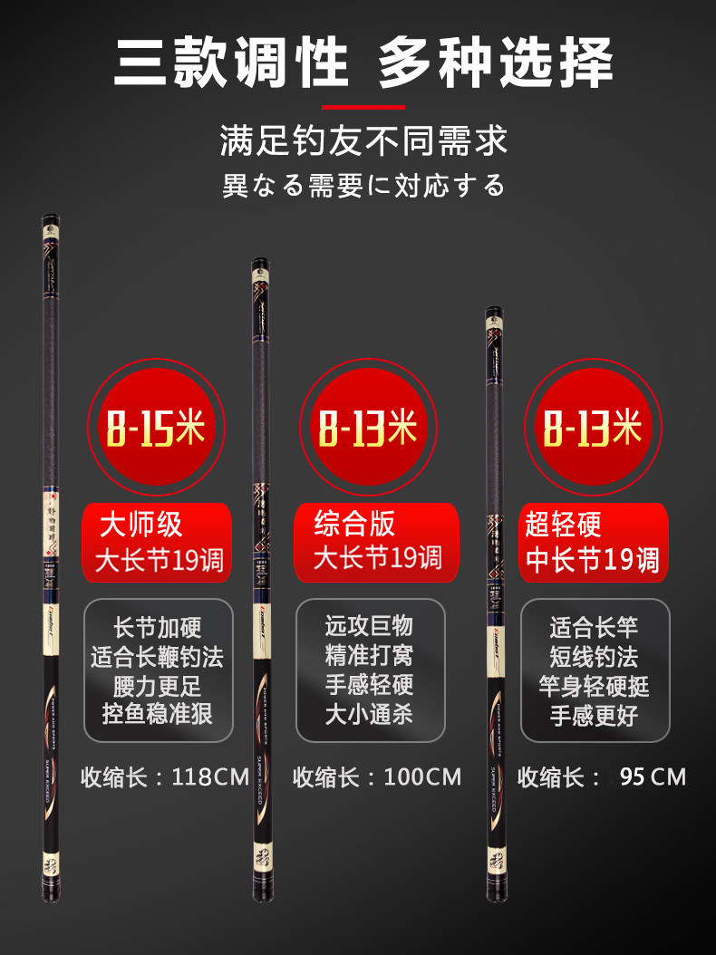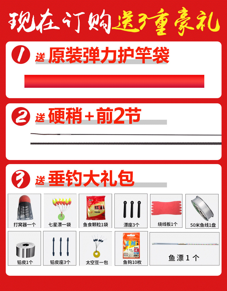 | super light hard 19 adjustable mid-length section 12 m + front two sections + hard slightly + big gift bag | CN¥ 361.0 | 991 piece available |