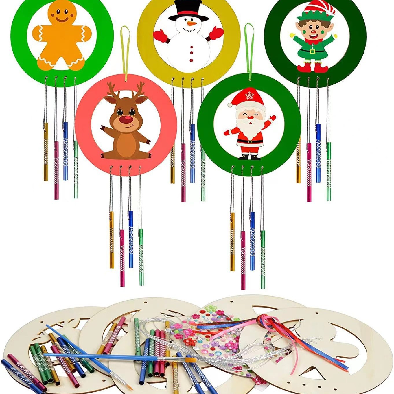 round christmas wind chimes 5 pieces +20 wind chimes + brush 2 pieces + stickers + line