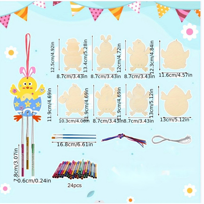 12 pieces rabbit wind chimes +48 wind chimes +2 pens + rope + drill