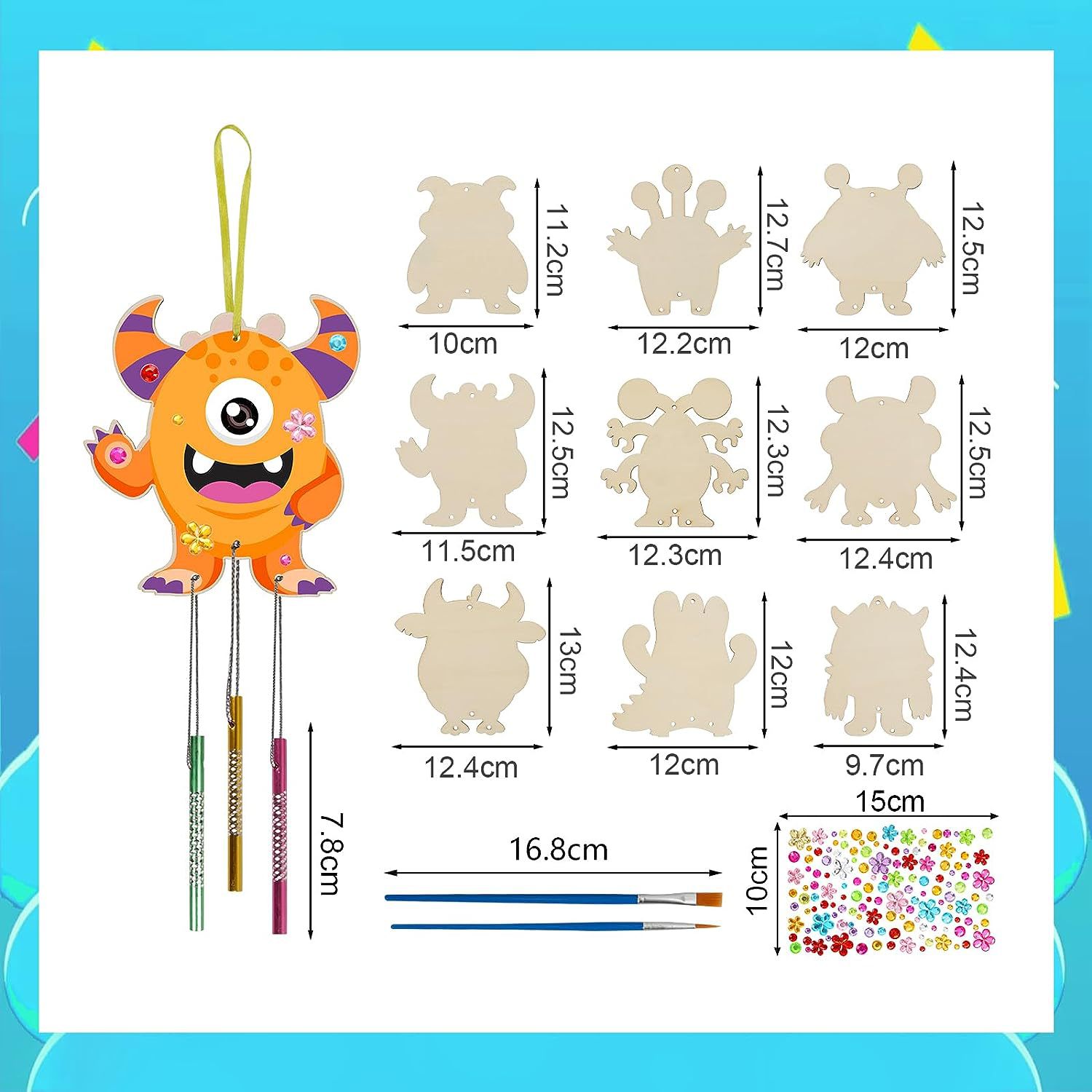 monster 9 pieces +27 wind chimes + brush 2 pieces + stickers + lines