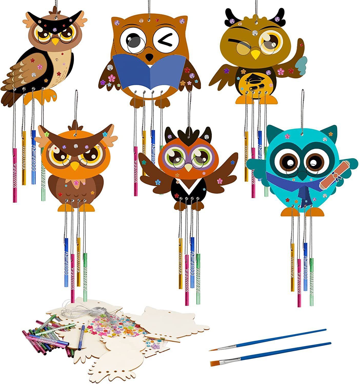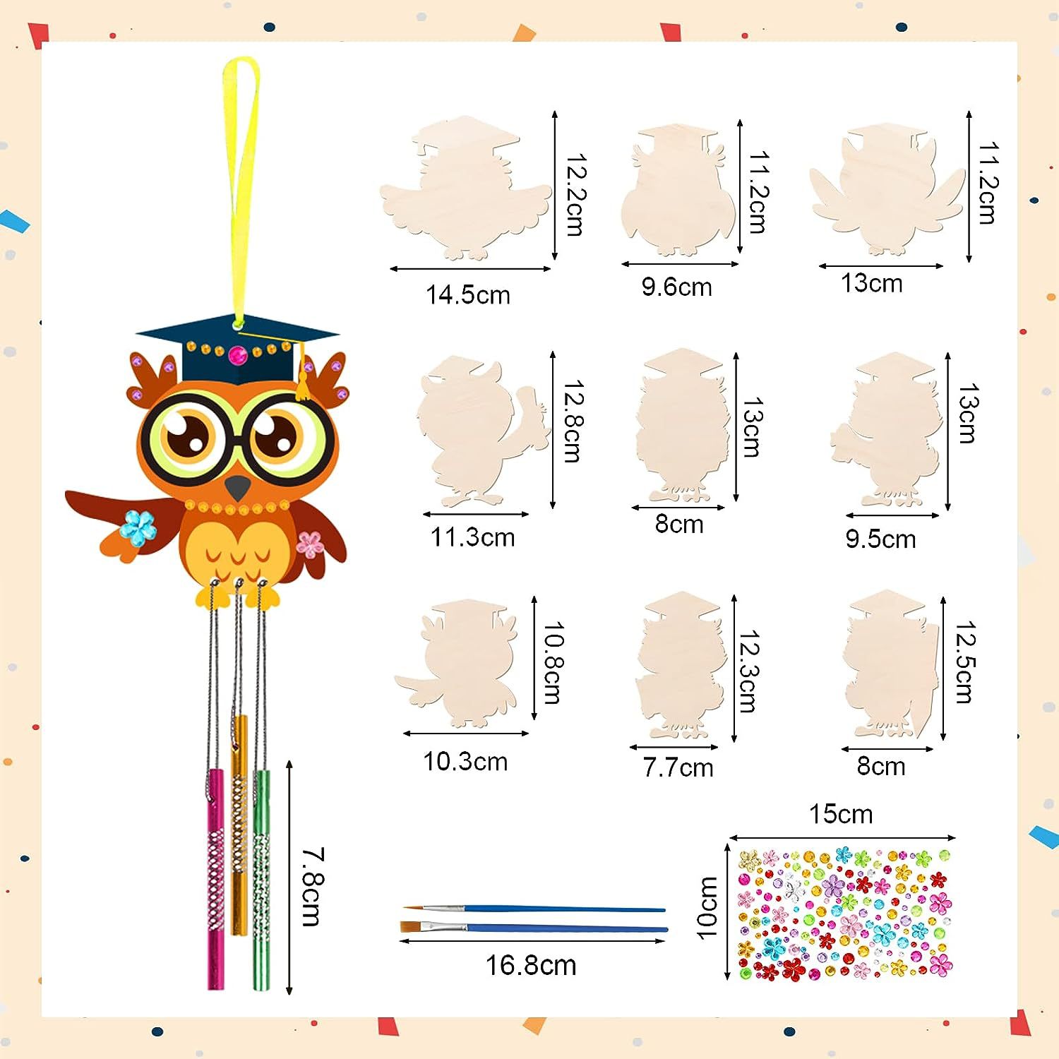 graduation owl 9 pieces + wind chimes 27 pieces + brush 2 pieces + stickers + line
