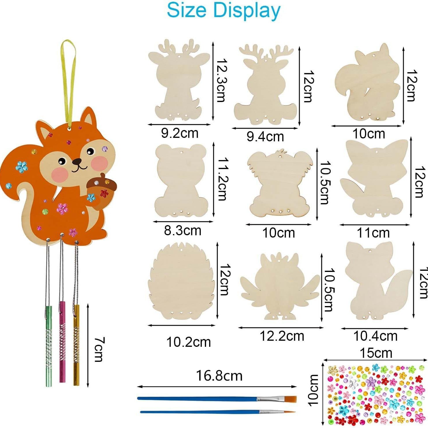 hedgehog wood piece 5+20 wind chimes +2 brush + stickers +5 m thread